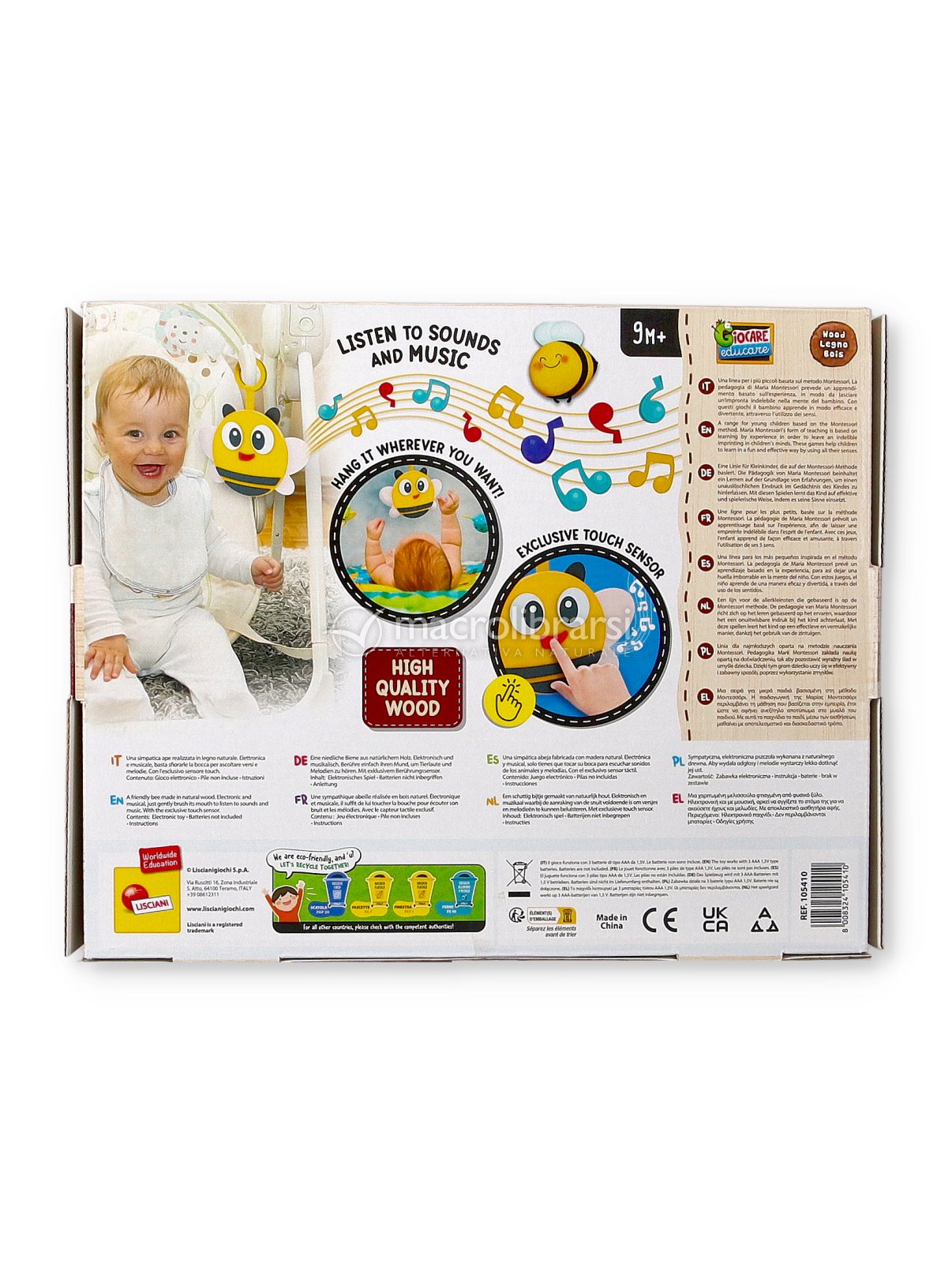 Una simpatica ape realizzata in legno naturale, elettronica e musicale. Basta sfiorare la bocca per ascoltare versi e melodie.