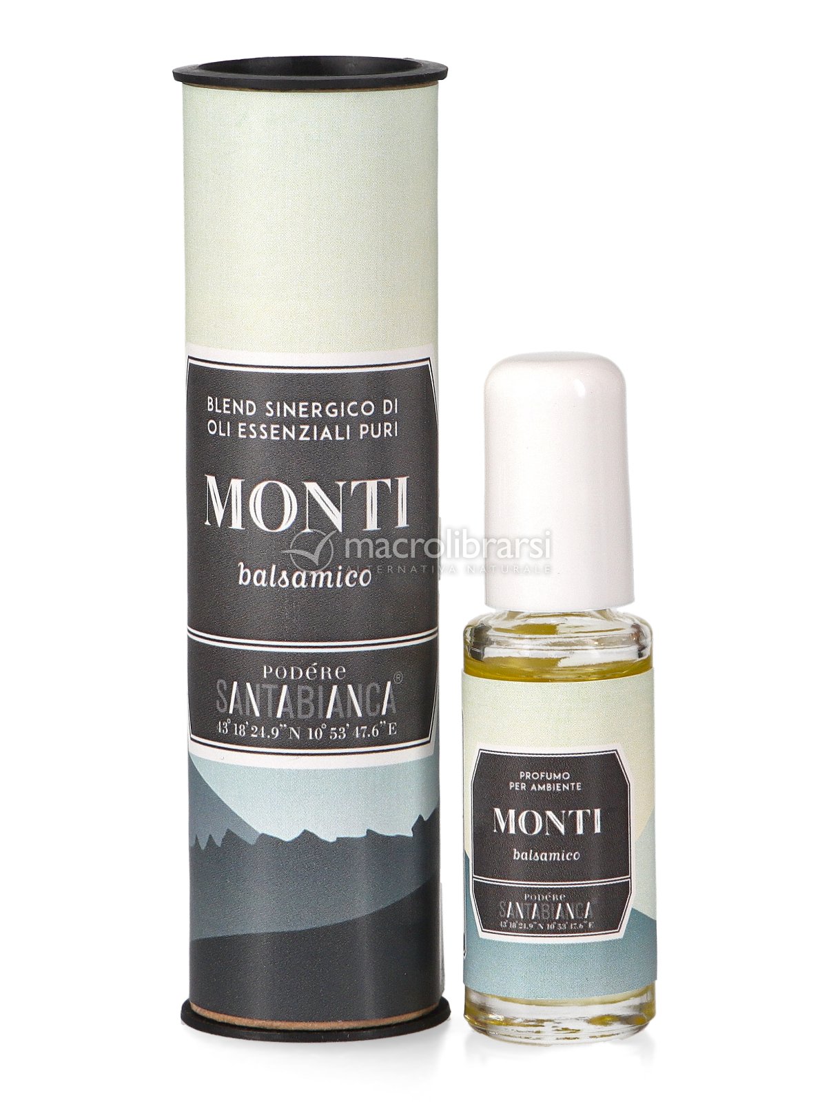 La miscela Monti di Santa Bianca contiene un mix di oli essenziali 100% puri con proprietà balsamiche utili per le vie respiratorie e per purificare l'aria.