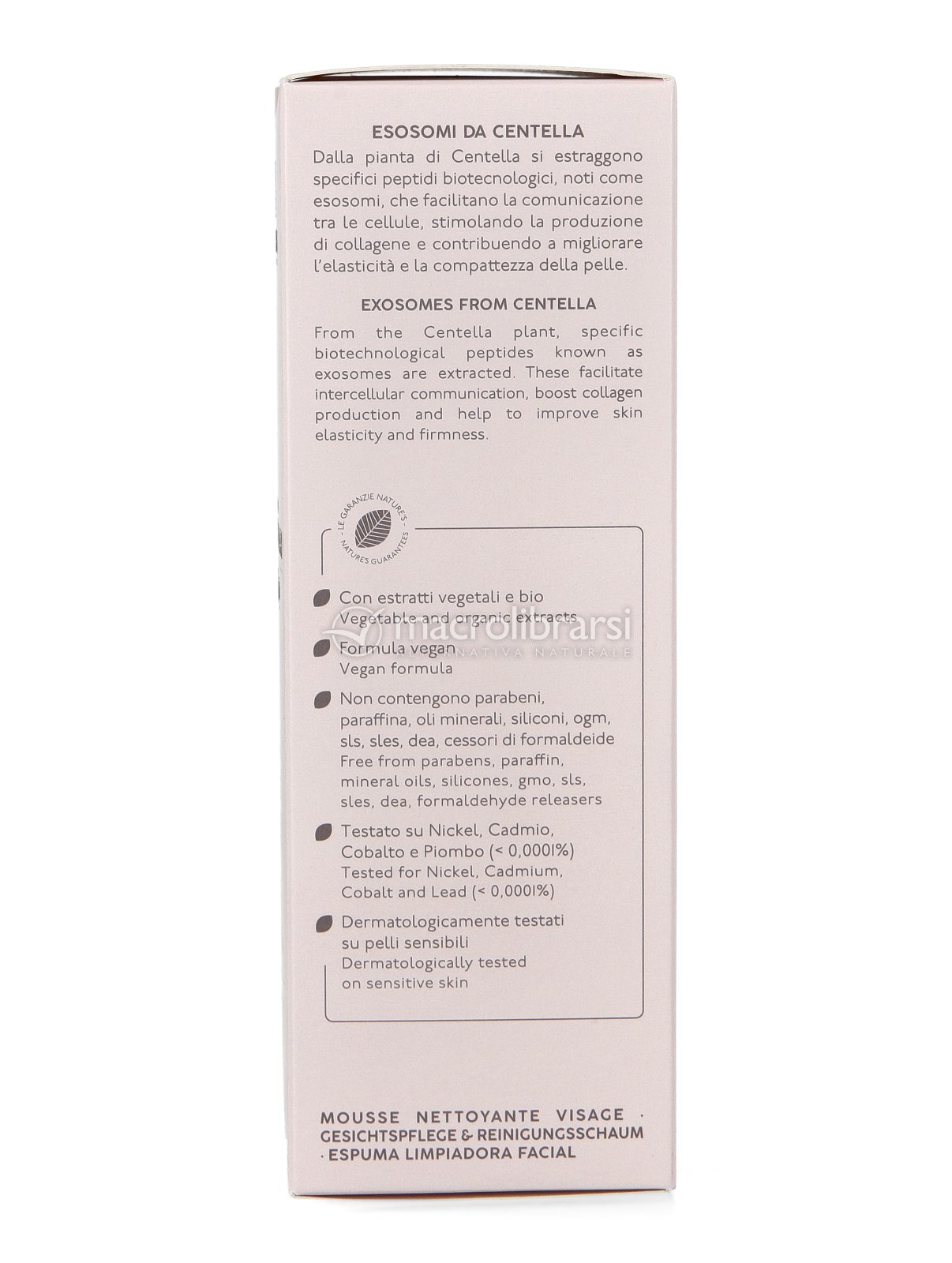 Gli esosomi da Centella, specifici peptidi biotecnologici, facilitano la comunicazione tra le cellule, stimolando la produzione di collagene e contribuendo a migliorare l'elasticità e la compattezza della pelle, per una pelle visibilmente più sana e luminosa.