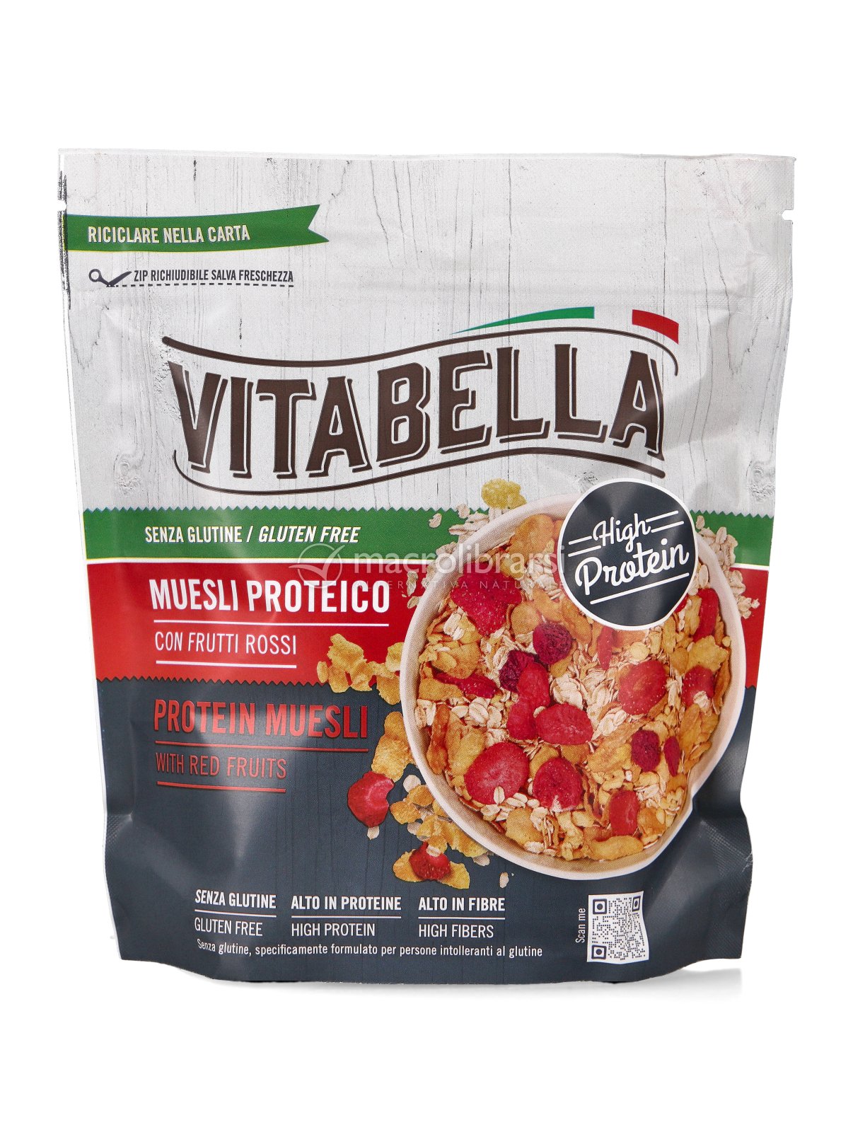 Vitabella Muesli Proteico è un mix croccante e gustoso pensato per una colazione proteica. La soluzione ideale per chi non vuole rinunciare al piacere del "crunch" ma è attento all'equilibrio nutrizionale. Grazie ai fiocchi di mais tostati, la consistenza rimane piacevolmente croccante anche nel latte, evitando l'effetto "molle" dei muesli tradizionali. È una ricetta pulita e funzionale, pensata per chi pratica sport, per chi segue uno stile di vita attivo o semplicemente per chi desidera una colazione più bilanciata e ricca di nutrienti essenziali.