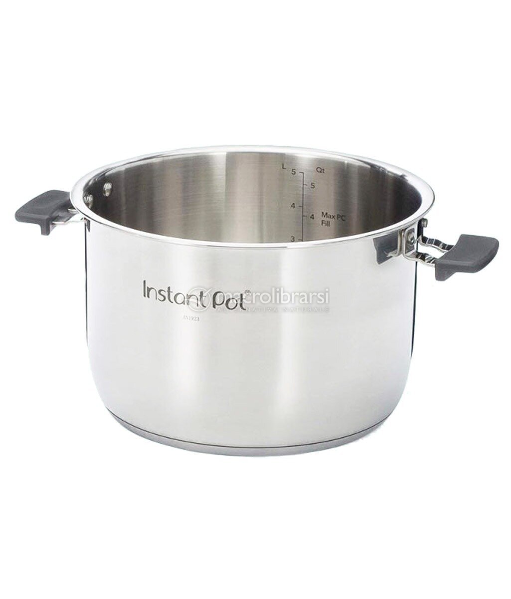 | Materiale | Coperchio e pentola interna in acciaio inox, pentola esterna acciaio inox spazzolato con finitura nera opaca - Pentola interna con fondo rinforzato e maniglie in silicone, può essere trasferita su tavoli e fornelli, compresi quelli a induzione. |