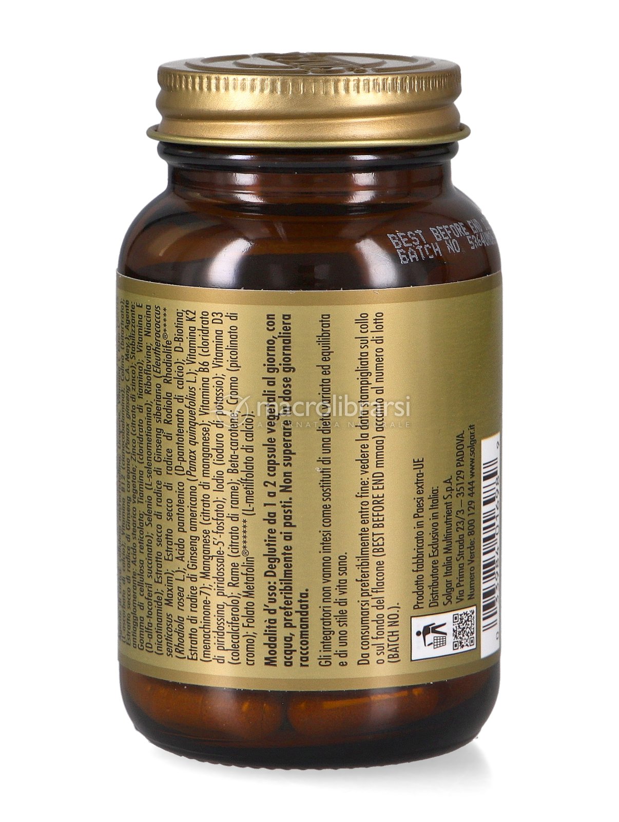 | Disclaimer | Non superare la dose giornaliera consigliata. Gli integratori alimentari non vanno intesi come sostituti di una dieta variata ed equilibrata. Tenere fuori dalla portata dei bambini al di sotto dei tre anni. Non utilizzare in gravidanza e nei bambini o comunque per periodi prolungati senza sentire il parere del medico. Conservare in luogo asciutto e lontano da fonti di calore. Richiudere la confezione dopo l'uso. Macrolibrarsi ricorda l'importanza di seguire uno stile di vita sano e un'alimentazione variata ed equilibrata. |