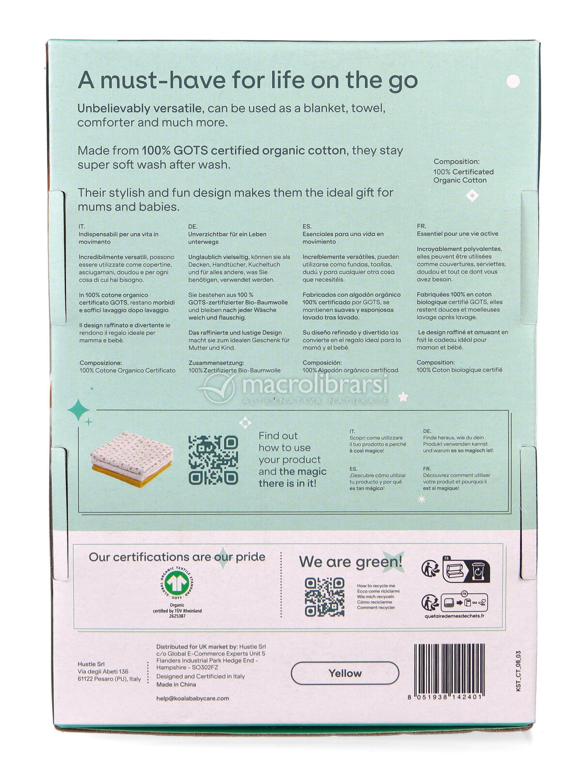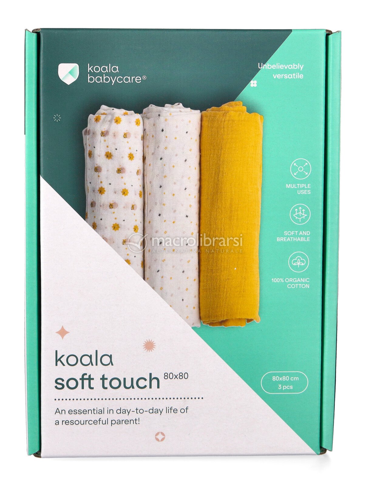 Queste mussole sono proposte da Koala Babycare, brand italiano che realizza prodotti pratici e sicuri per la prima infanzia, pensati per il benessere di genitori e bambini e per accompagnare con semplicità la quotidianità.