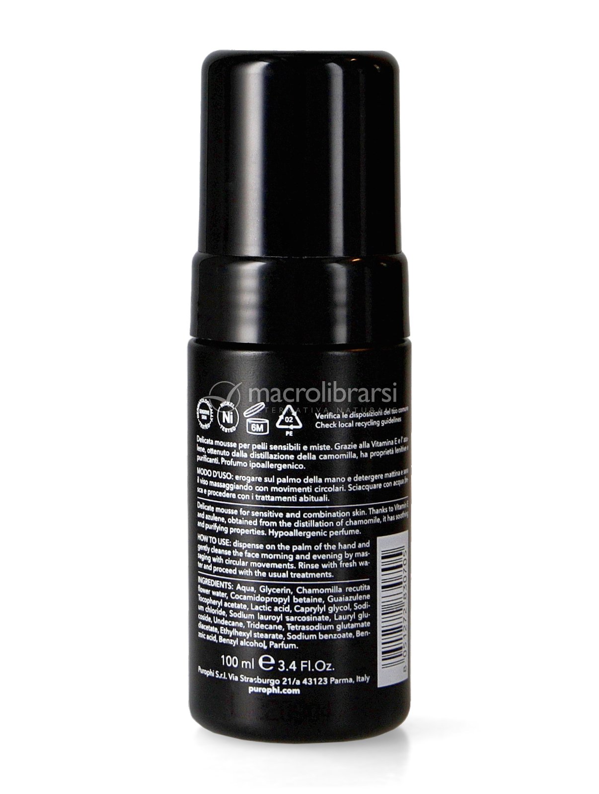 Mousse detergente dalla consistenza leggera, soffice e spumosa perfetta per purificare e rimuovere delicatamente le impurità dalla pelle mista e sensibile.