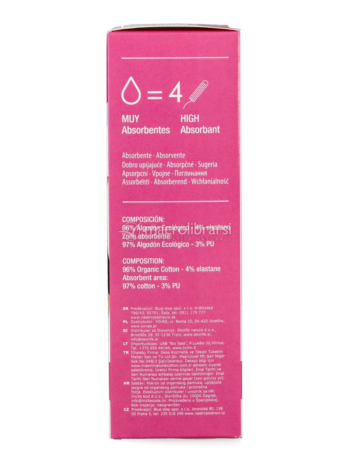 Il tessuto tecnico 3D multilayer assorbe rapidamente, trattiene i liquidi e previene le perdite, lasciandoti sempre una piacevole sensazione di asciutto. Grazie alla loro alta capacità di assorbimento, equivalente a più di quattro tamponi, questi slip sono perfetti per chi cerca una soluzione pratica, sicura e sostenibile.