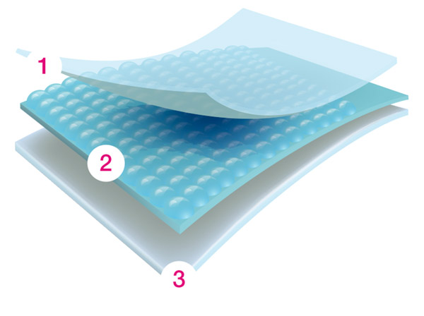 3. Anche l'ultimo strato è realizzato in Cotone Ecologico, con all'interno un sottilissimo laminato in poliuretano. Questo laminato è impermeabile, ma allo stesso tempo traspirante, in quanto non lascia passare i liquidi, ma consente alla condensa dell'umidità corporea di fuoriuscire.