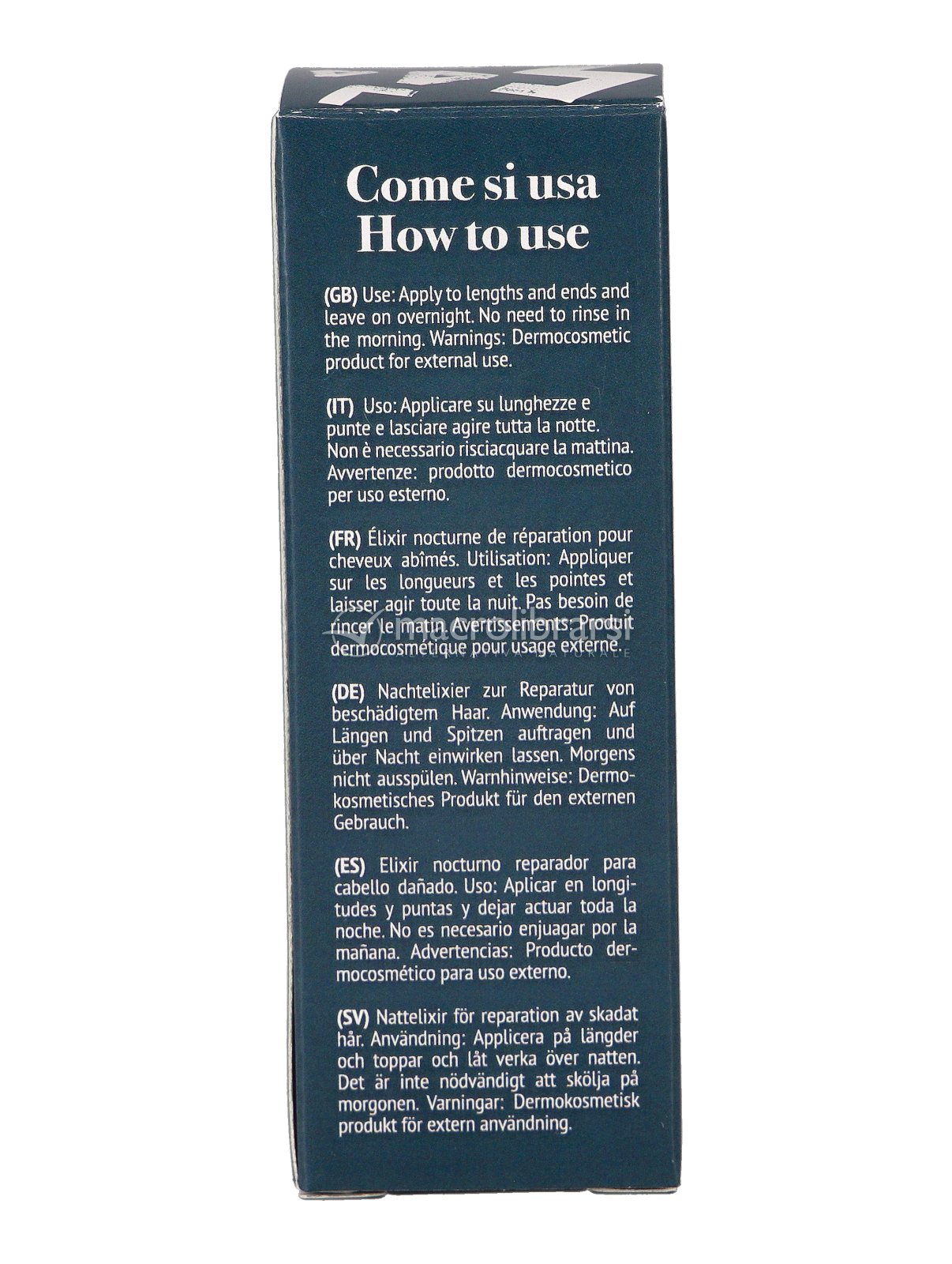 Olio riparatore ad alta affinità con la fibra capillare, formulato con una sinergia di oli vegetali nutrienti e attivi antiossidanti da applicare prima di andare a dormire.