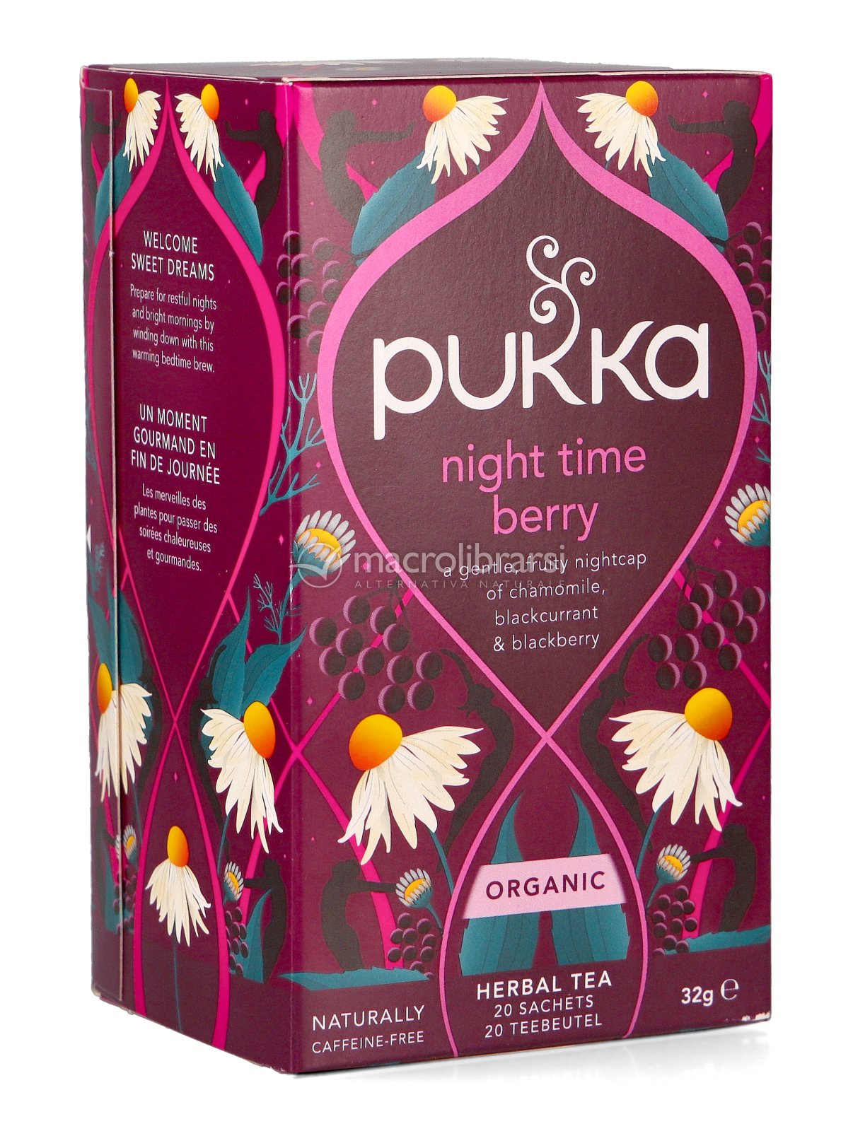 Ottima tisana dell'Azenda Pucca . Consiglio a tutti la Night Time Berry a base di frutti di bosco , camomilla , valeriana ed echinacea. Mi concilia il sonno in modo eccezionale. Compratela.