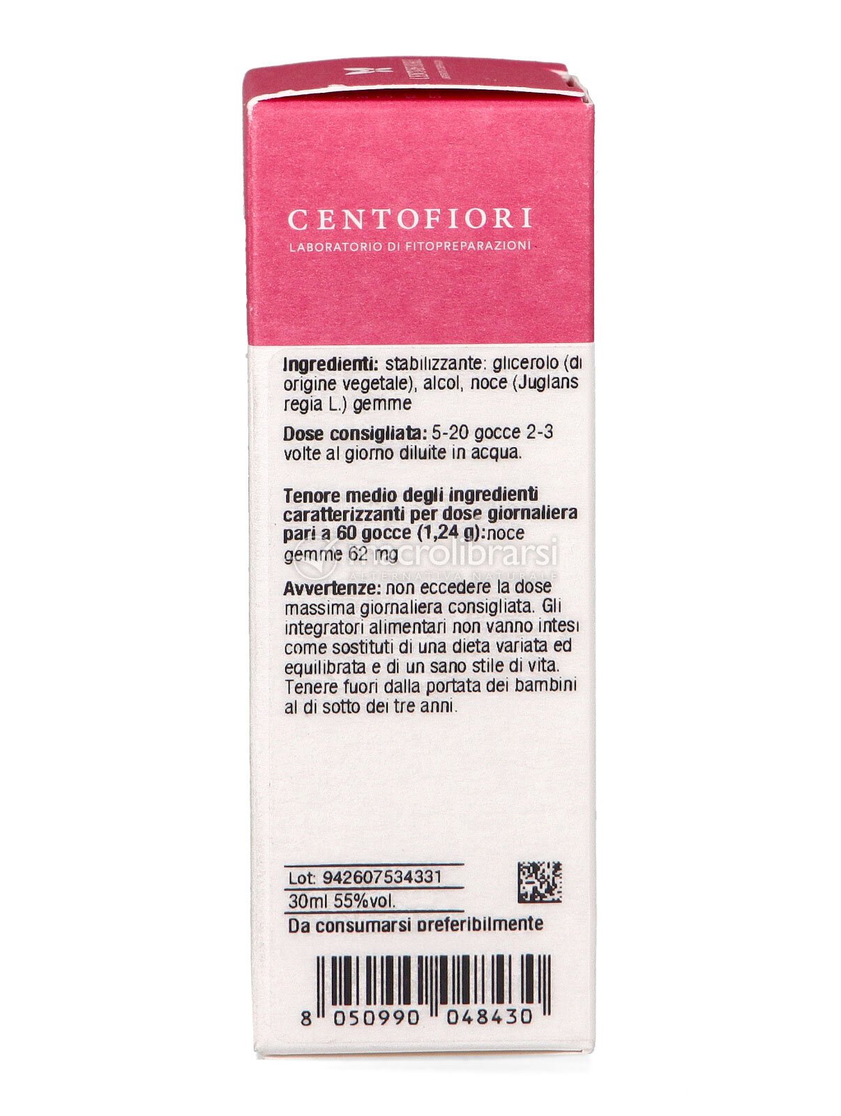 Macerato di gemme fresche di Noce (Juglans regia) in alcool e glicerolo vegetale.