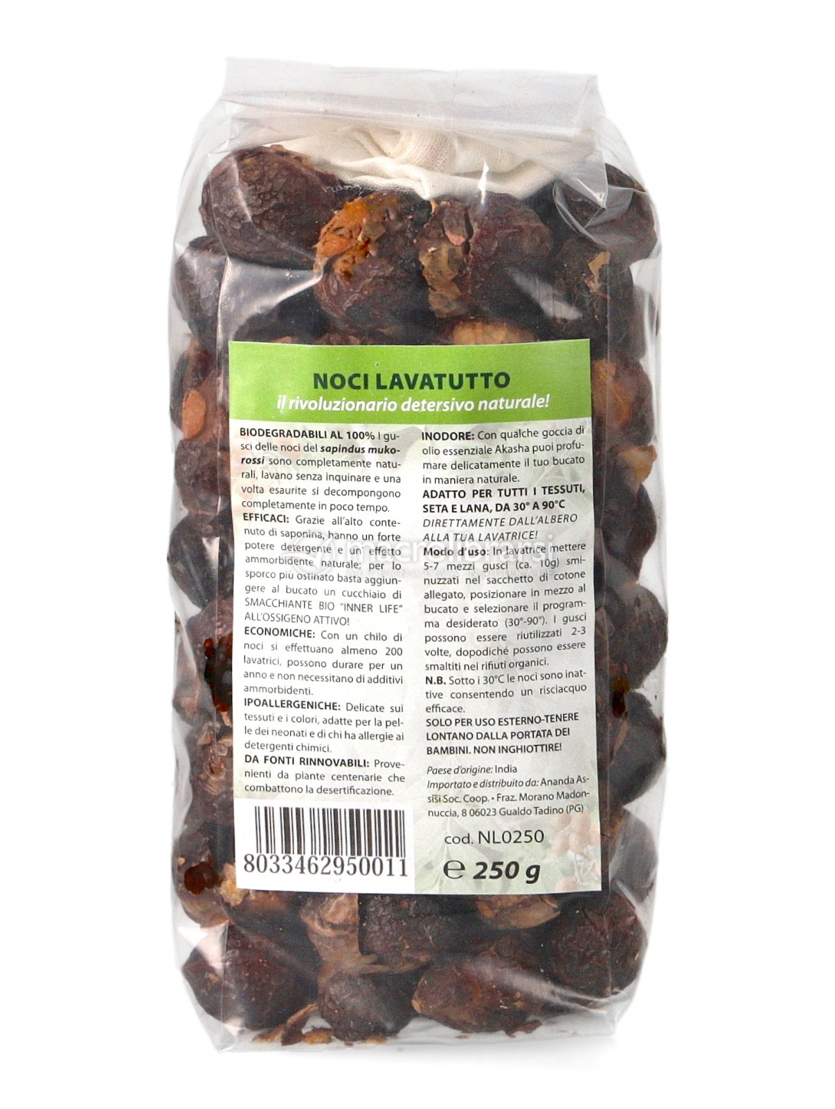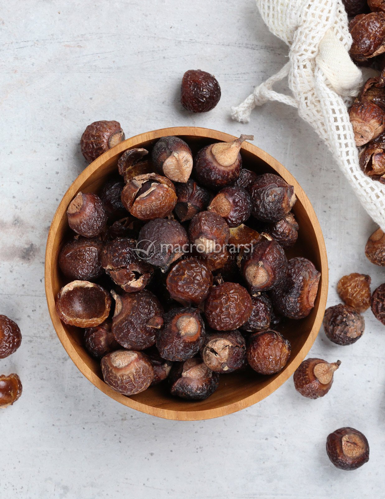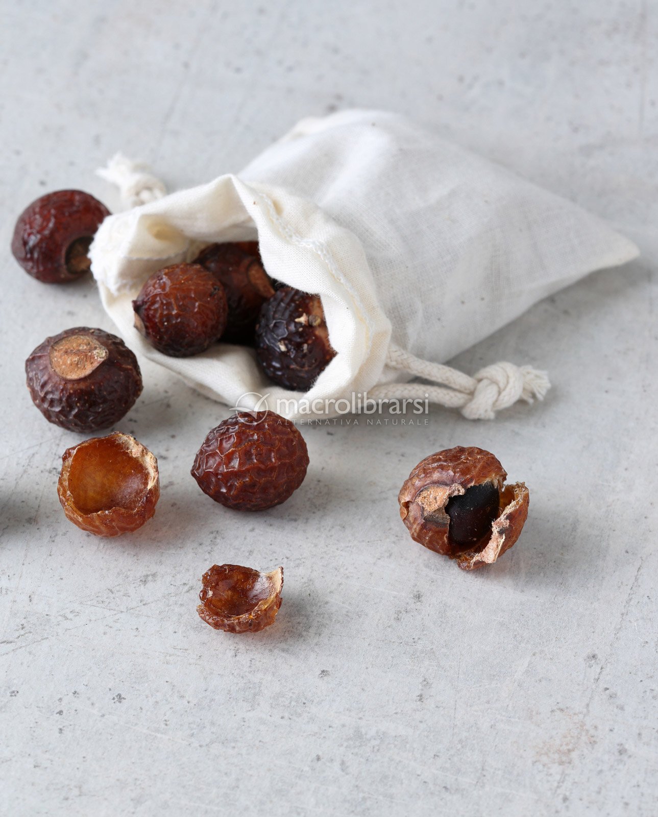 I gusci delle noci del Sapindus Mukorossi contengono saponina, una sostanza organica solubile in acqua che sviluppa oltre i 30°C un valido potere detergente, disinfettante e antibatterico.