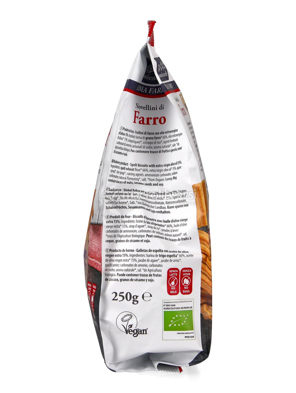 Novellini di Farro Biologici preparati solo con olio extravergine d’oliva, questi biscotti uniscono gusto autentico e ingredienti di qualità.