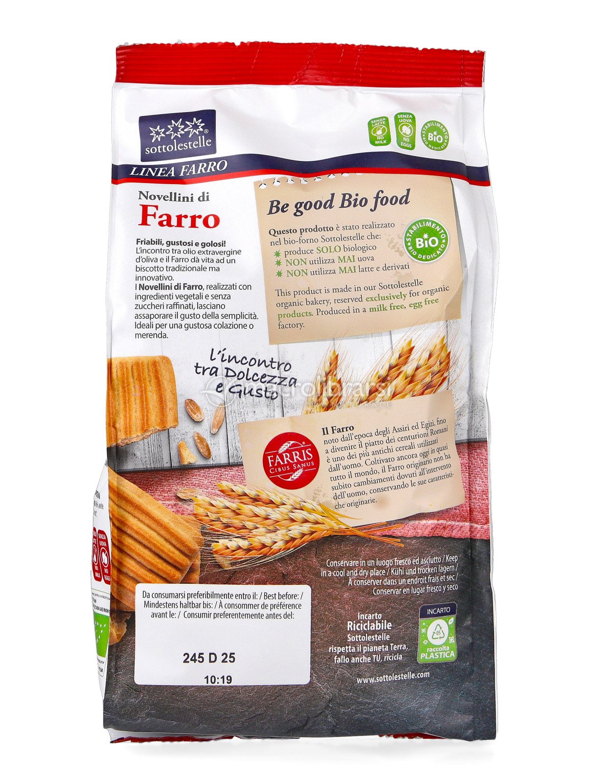 Ho comprato questi biscotti Novellini di farro per mio marito dato che per il suo intestino gli hanno consigliato di variare dal solito grano e di preferire i grani antichi, ho comprato sia questi sia quelli senatore cappelli stessa marca e sono stati apprezzati entrambi, difficile trovarli con olio extravergine d'oliva, direi impossibile al supermercato!!!