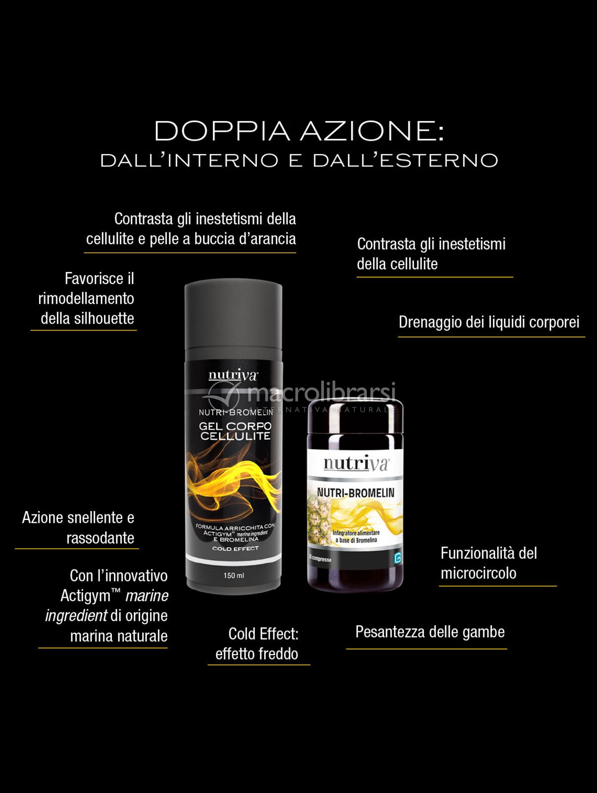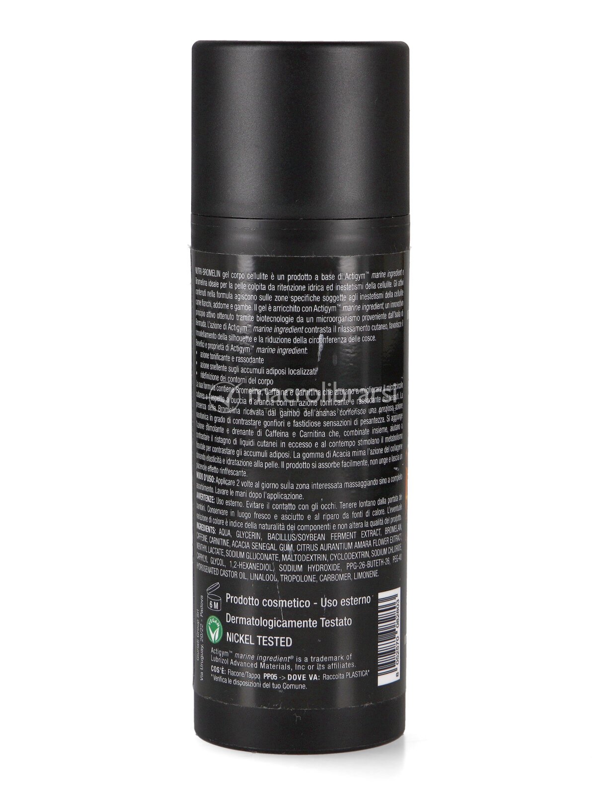 | Confezione | Gel corpo cellulite (150 ml) + nutri-bromelin (30 compresse da 700 mg). |