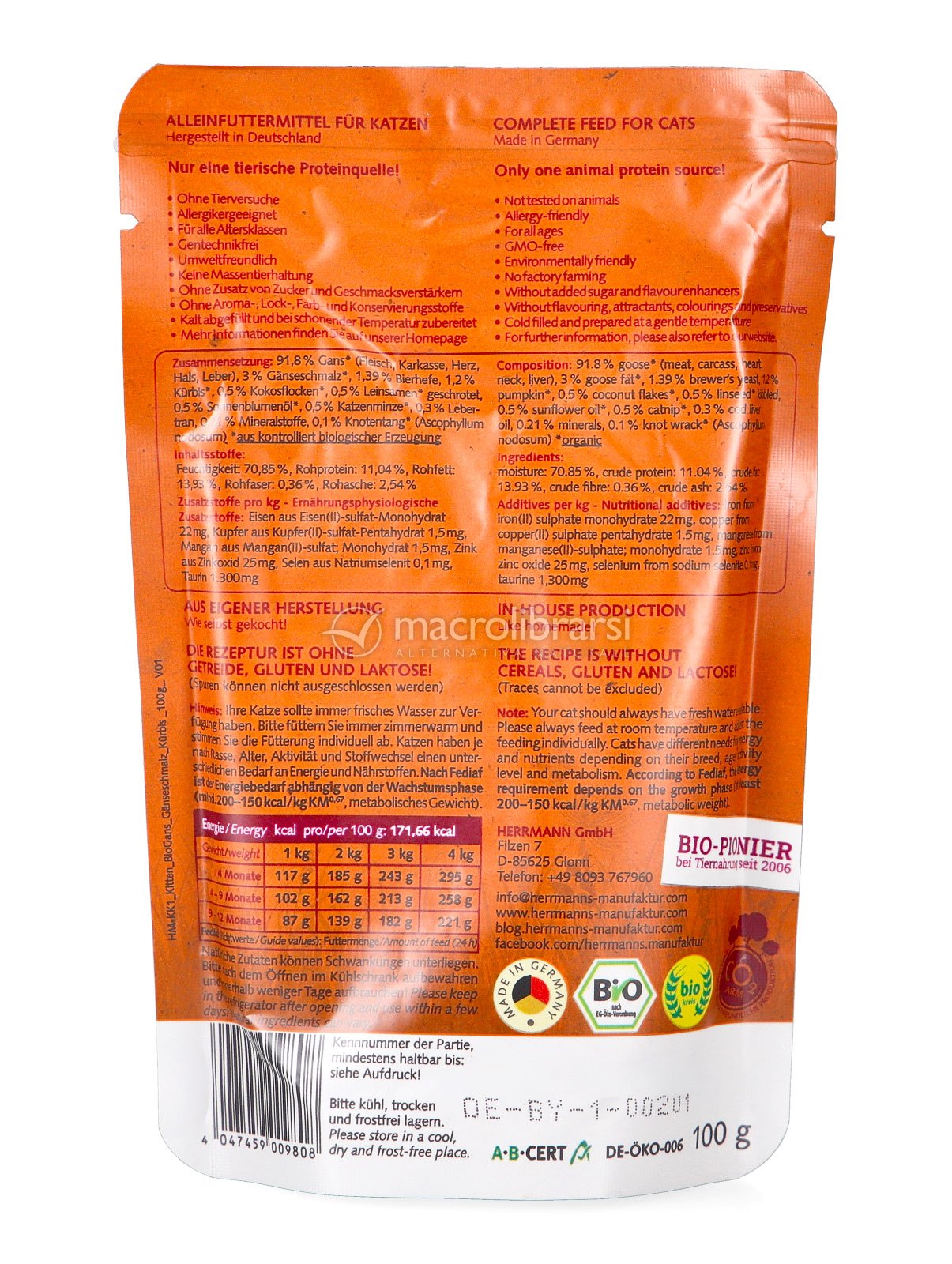 Per il tuo gattino, scegli la purezza assoluta della ricetta Oca bio con Zucca di Herrmann’s Selection.