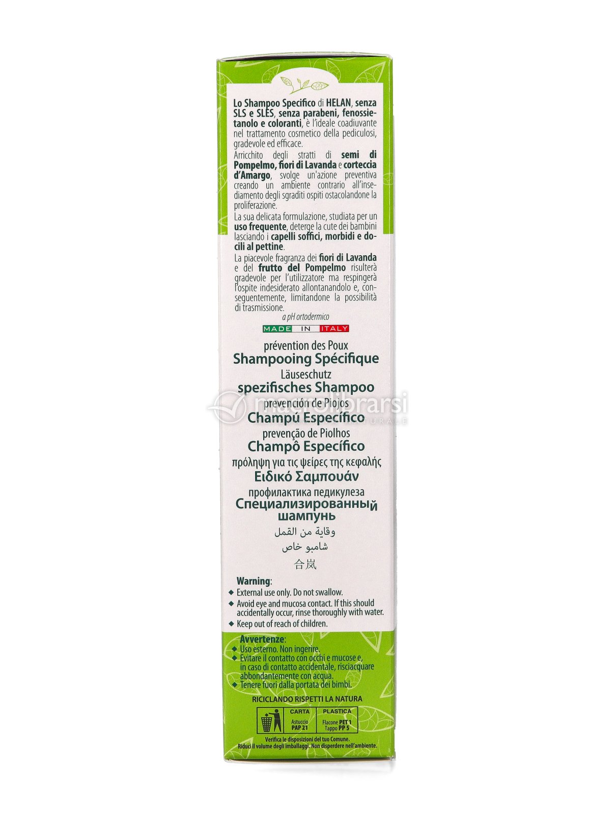 Lo Shampoo Specifico Helan contro pidocchi e lendini è il perfetto alleato nel trattamento della pediculosi. Grazie agli estratti di semi di Pompelmo, fiori di Lavanda, corteccia d'Amargo e foglie dell'albero del Té, riesce a compiere un'azione preventiva contro l'insediamento di pidocchi, ostacolandone la proliferazione.