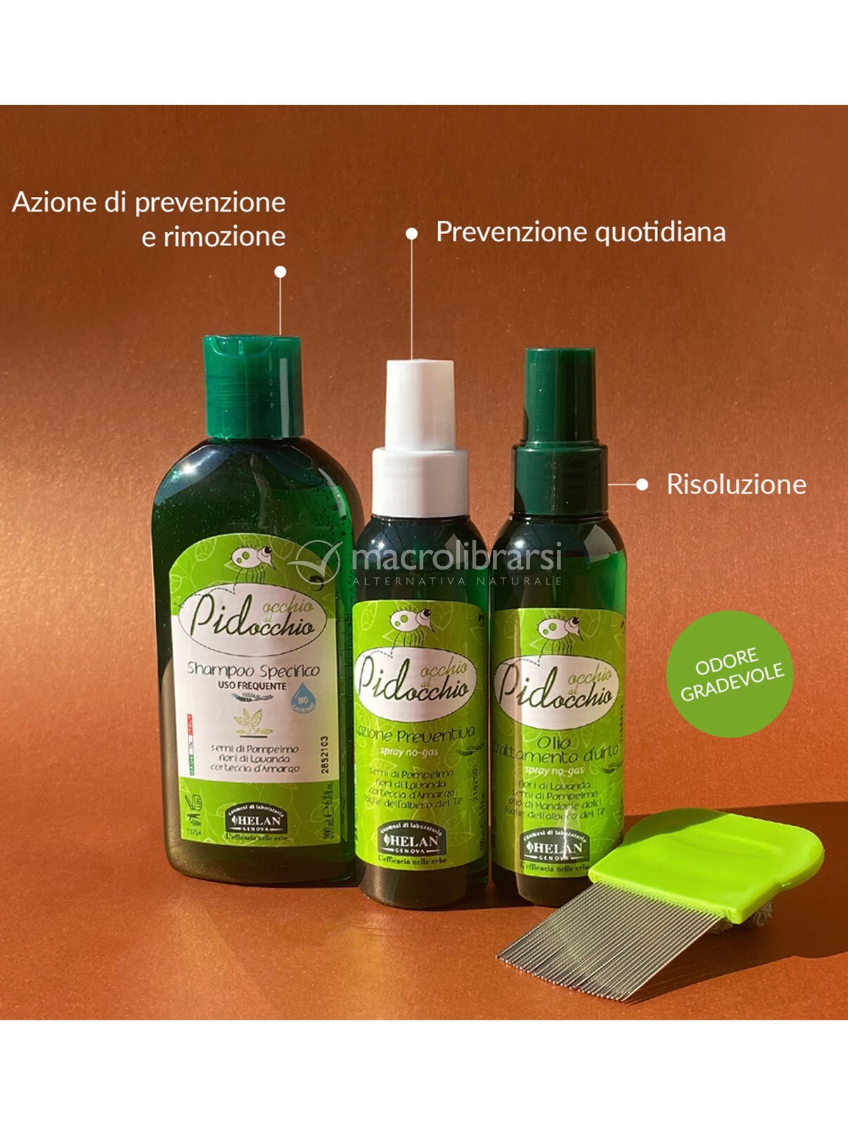 Ottimo, utilizzato insieme all'olio della stessa linea, abbiamo risolto il problema senza dover usare prodotti chimici fastidiosi, che danneggiano cuoio capelluto e rovinano I capelli