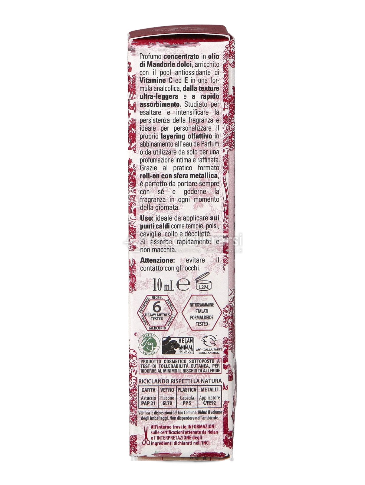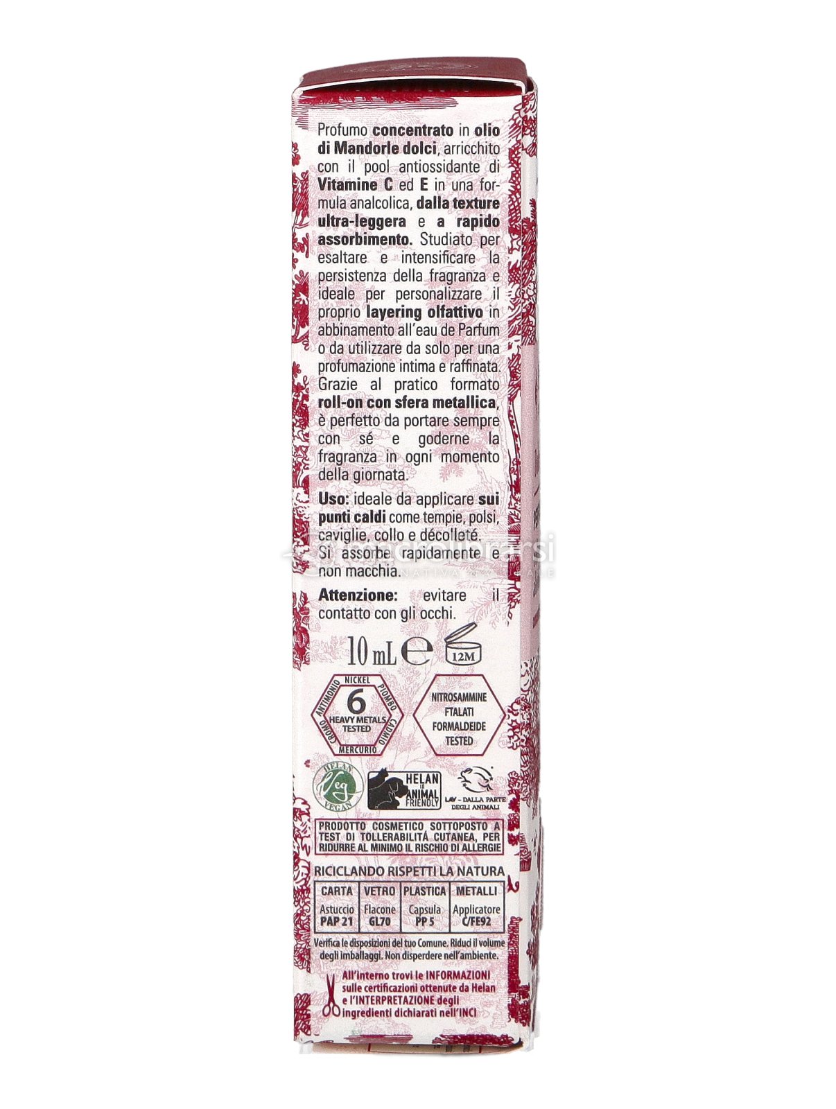 Un profumo concentrato analcolico, racchiuso in un pratico formato roll-on da 10 ml, per portare con sé la magia di una fragranza gourmand, orientale e muschiata in ogni momento della giornata.