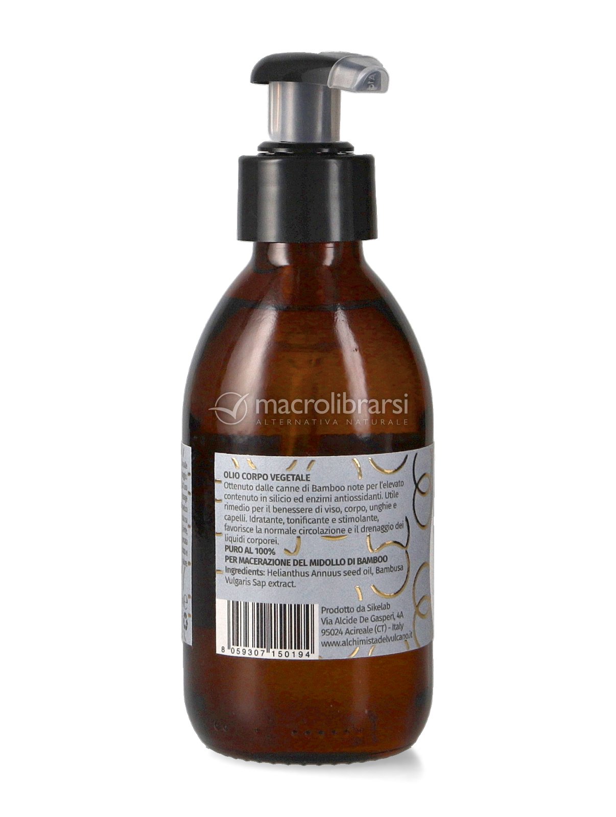Olio di bamboo di produzione siciliana. Ottimo prodotto da utilizzare da utilizzare su gambe / fianchi / pancia per mantenere elastica la pelle e cercare di contrastare le smagliature.