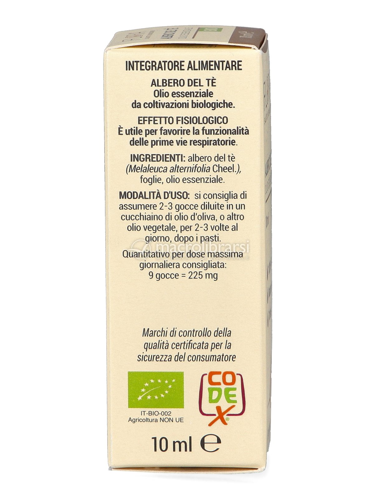 | Disclaimer | Non superare la dose giornaliera consigliata. Gli oli essenziali sono sostanze concentrate e non vanno usati puri ma diluiti in un olio vegetale. Evitare il contatto con occhi e mucose. Tenere fuori dalla portata dei bambini al di sotto dei tre anni. Per l’utilizzo in gravidanza e nei bambini o comunque per periodi prolungati si consiglia di sentire il parere del medico. Conservare in luogo asciutto e lontano da fonti di calore. Richiudere la confezione dopo l'uso. Macrolibrarsi ricorda l'importanza di seguire uno stile di vita sano e un'alimentazione variata ed equilibrata. |