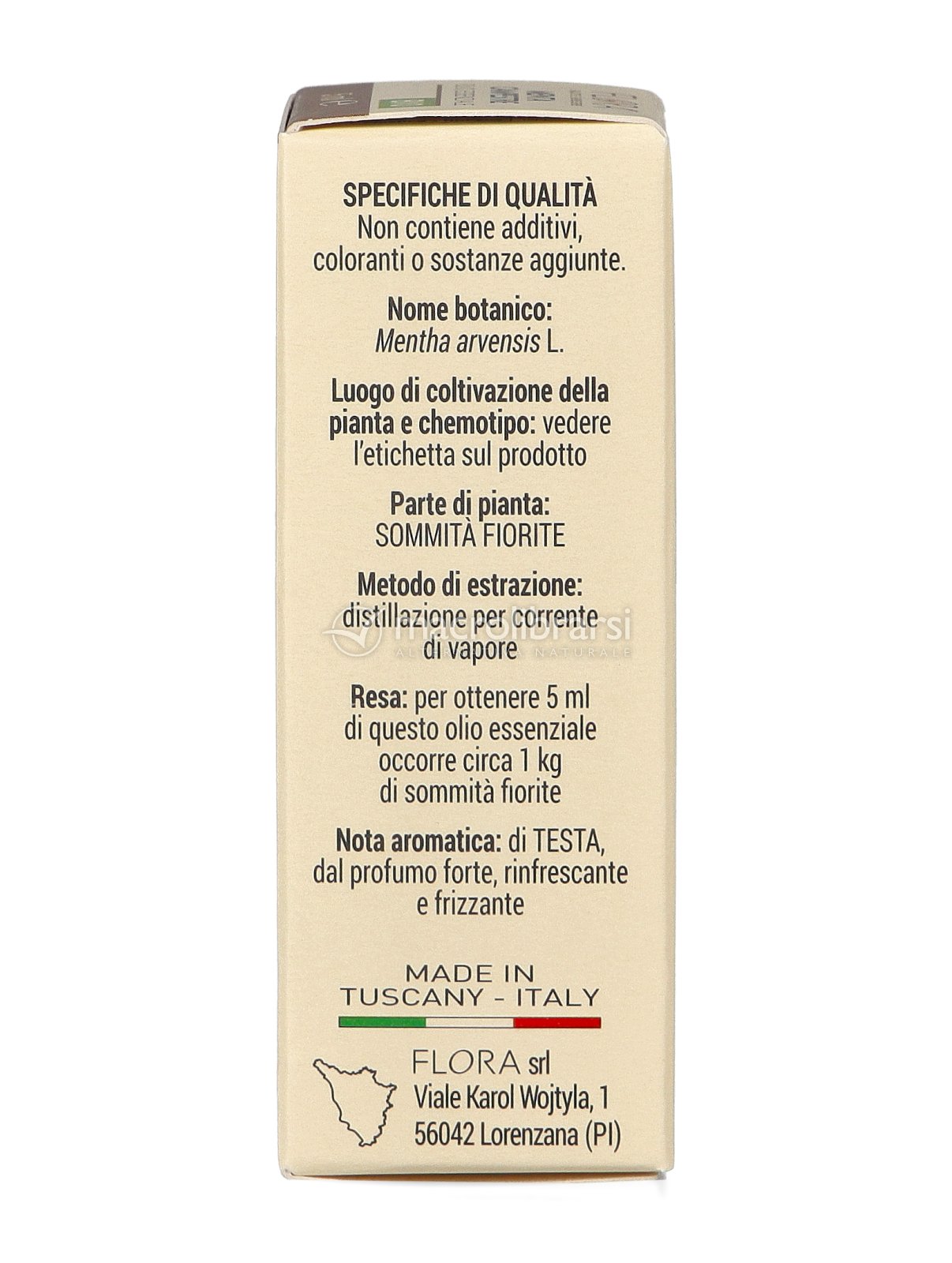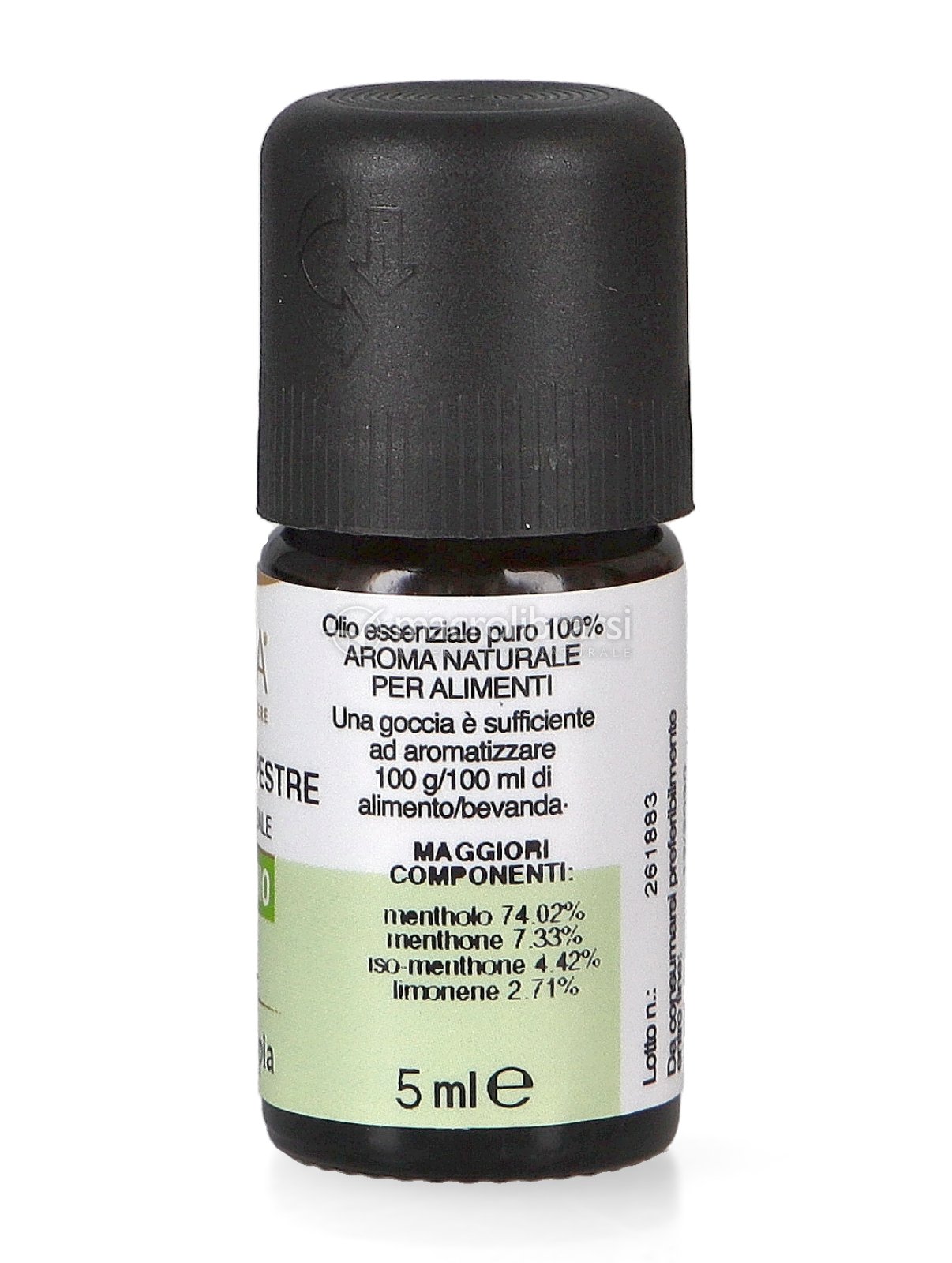 Olio essenziale di Mentha arvensis L., estratto mediante distillazione in corrente di vapore.