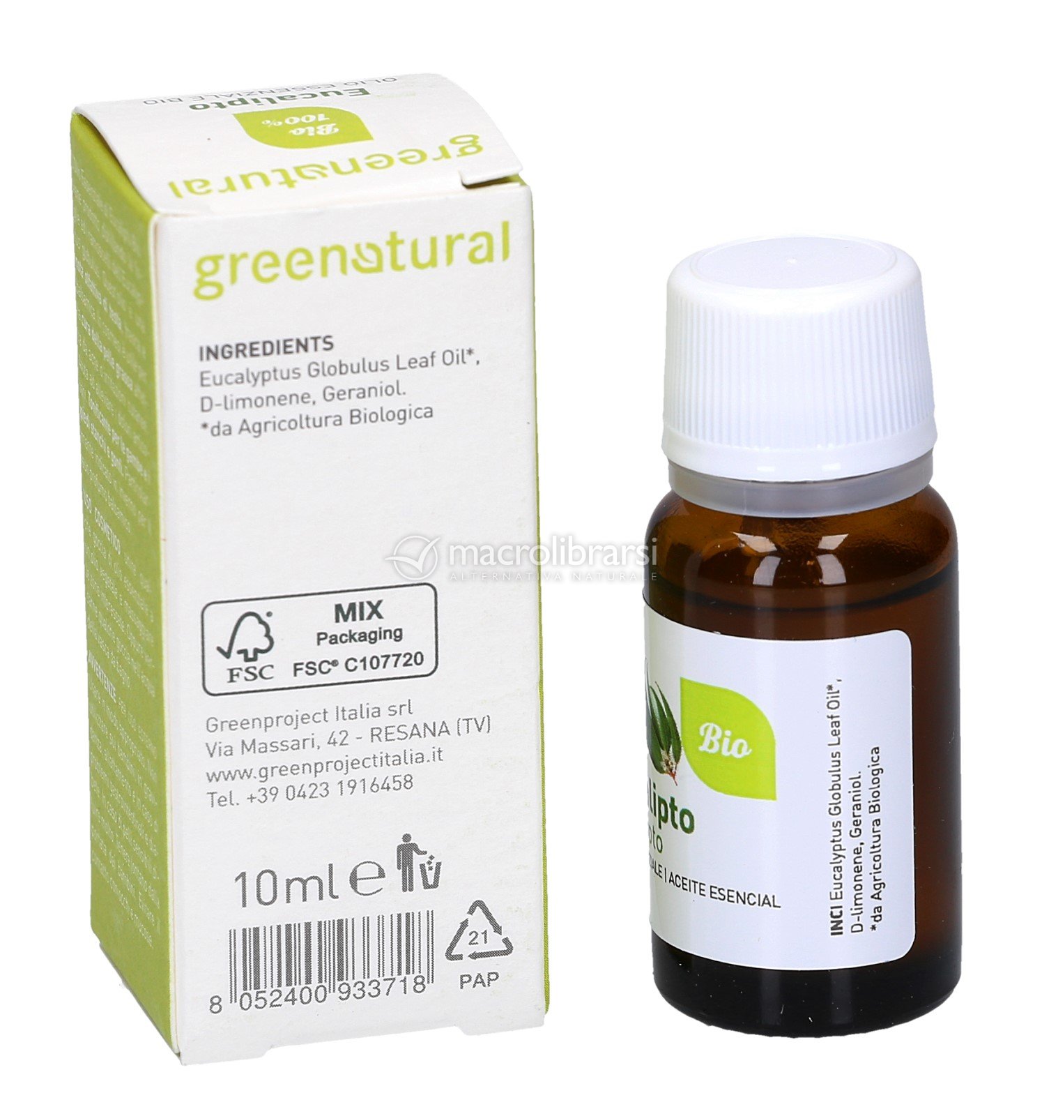 L'olio essenziale di eucalipto bio della Green natural è un prodotto eccellente, si sente la qualità delle materie prime. Utilizzo l'olio in gocce in un diffusore elettrico e devo dire che bastano poche gocce per sentire l'aroma fresco e intenso dell'eucalipto.
