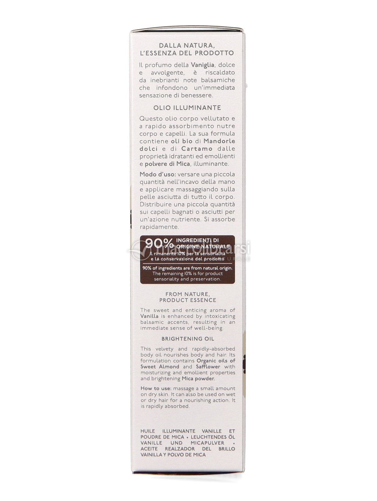 Olio corpo e capelli vellutato a rapido assorbimento con Vaniglia e Fiori di Loto.