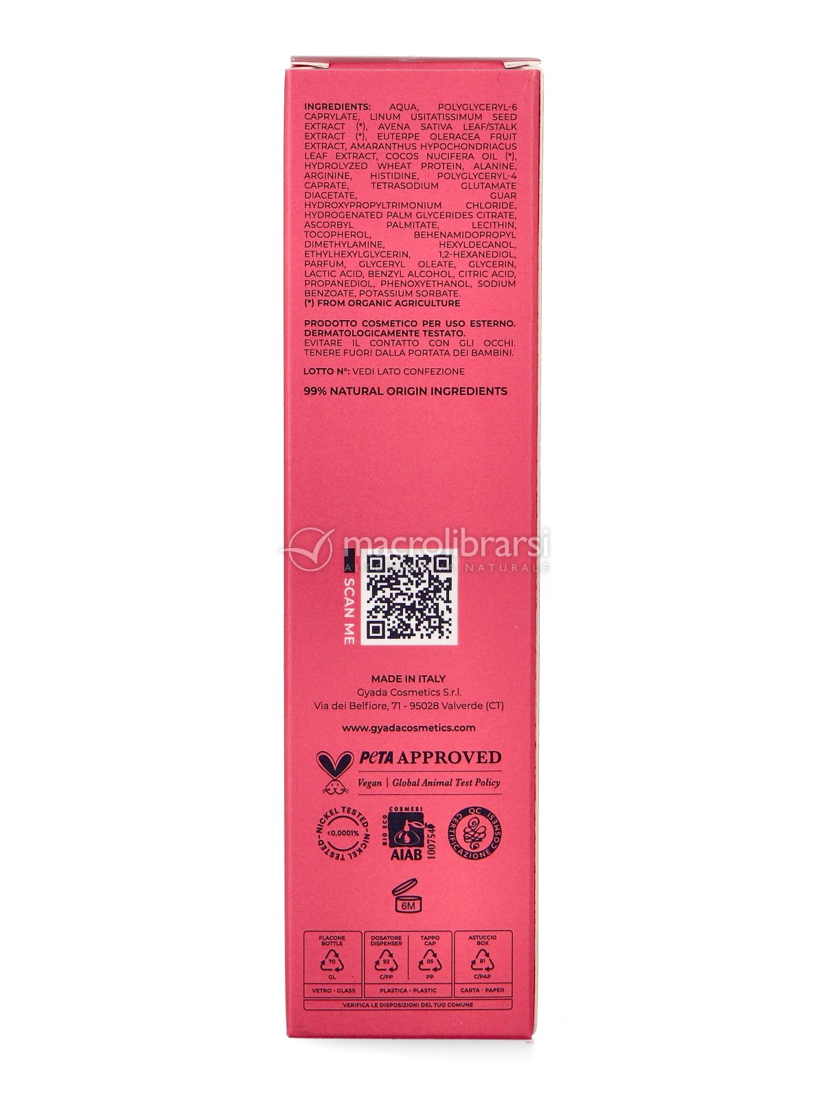 Grazie ad un mix di condizionanti di derivazione naturale come Lino, Avena, Acai e Amaranto, l'Olio Secco Lisciante di Gyada Cosmetics scompare sul capello lasciandolo morbido, luminoso e liscio, senza ungerlo.