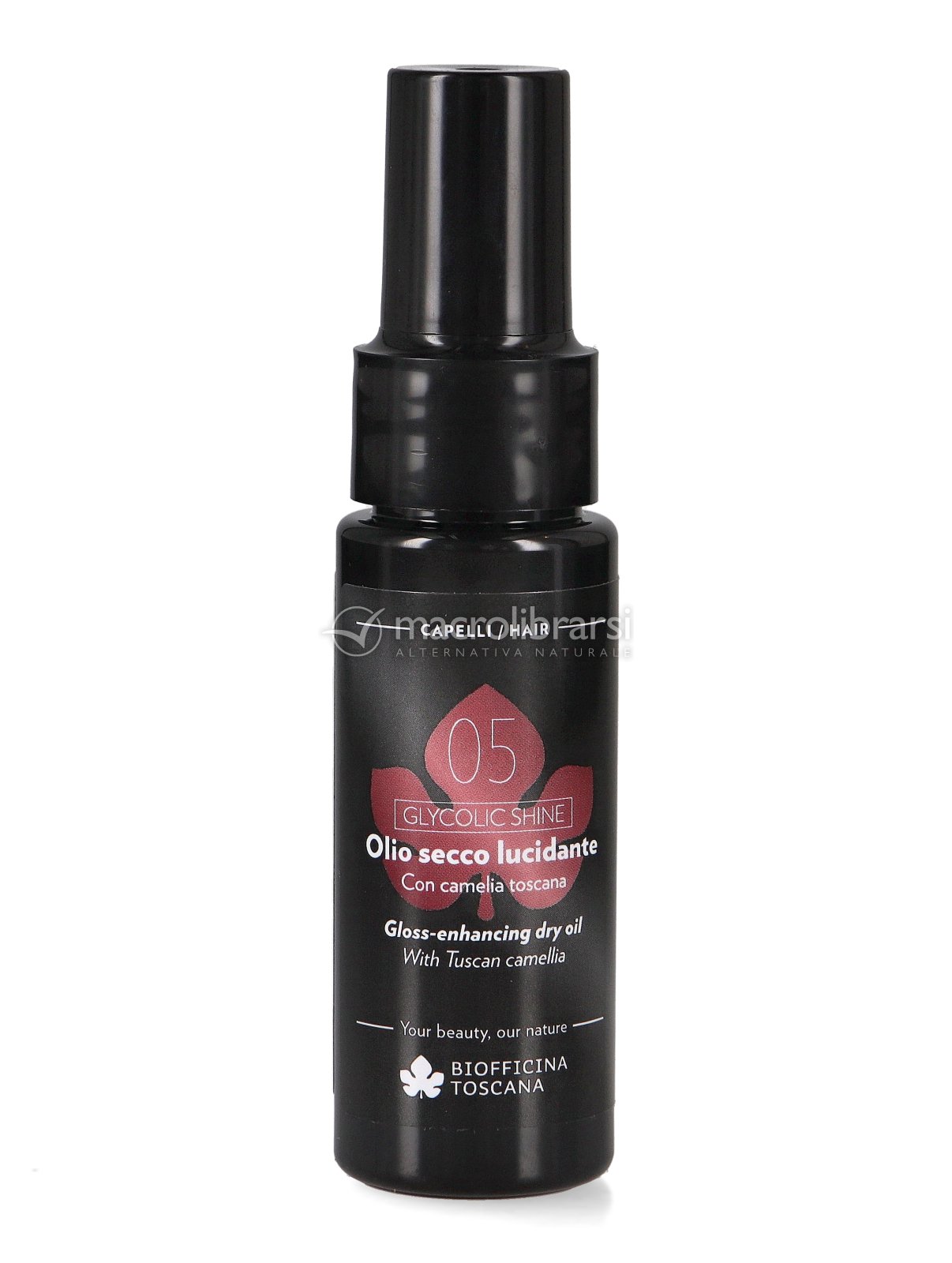 Olio secco per capelli dall'azione lucidante che completa il trattamento capelli all’acido glicolico di Biofficina Toscana, sigillando le cuticole e rendendo i capelli extra-luminosi, morbidi, setosi e facili da pettinare.