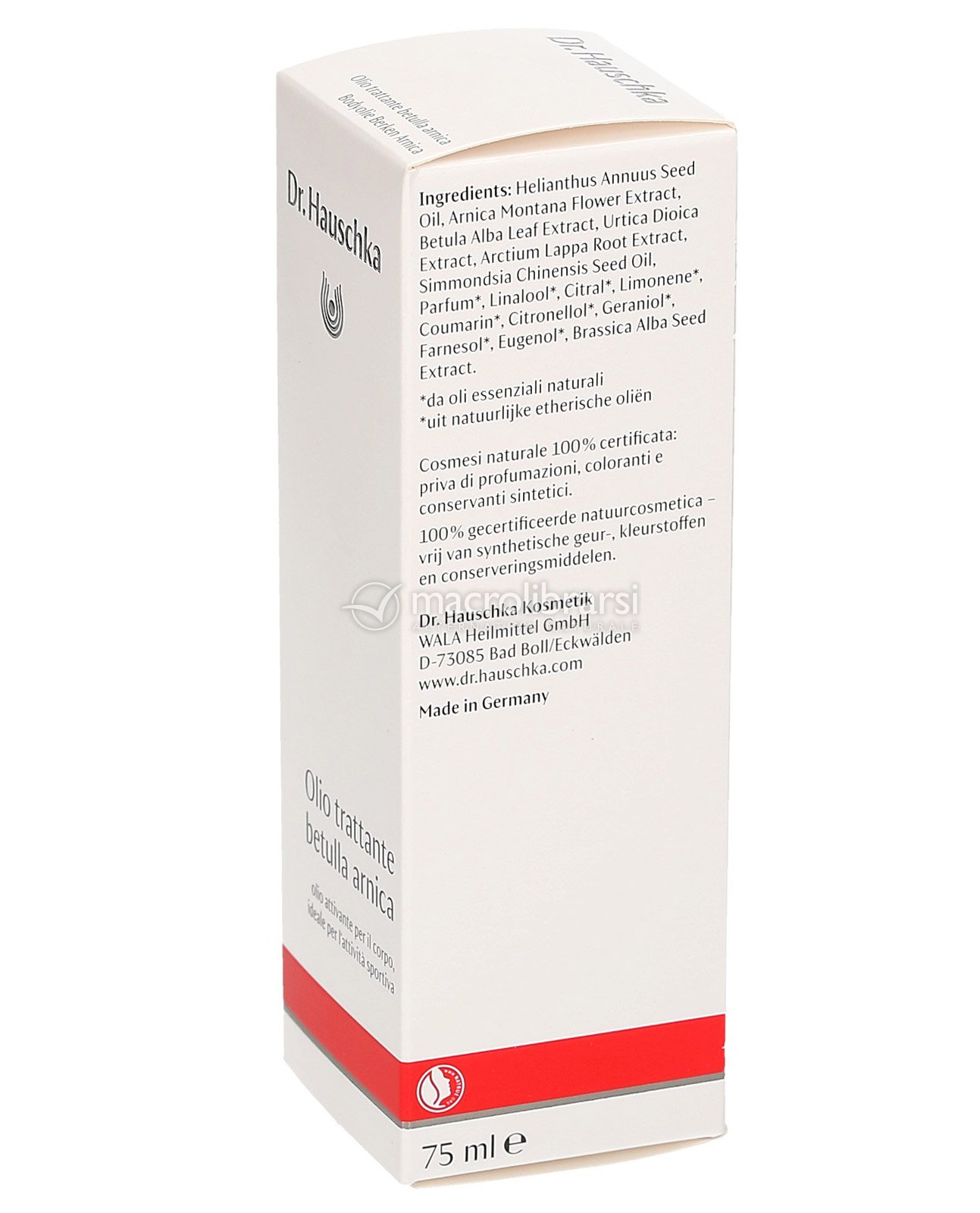 L’Olio trattante viene ottenuto combinando le foglie di betulla e l’arnica, dalle proprietà rinforzanti sulle funzioni della pelle, la bardana e l’ortica, fortificante, a olio di girasole da coltivazione biologica controllata, lasciandoli maturare per una settimana al termine di un particolare processo ritmico.