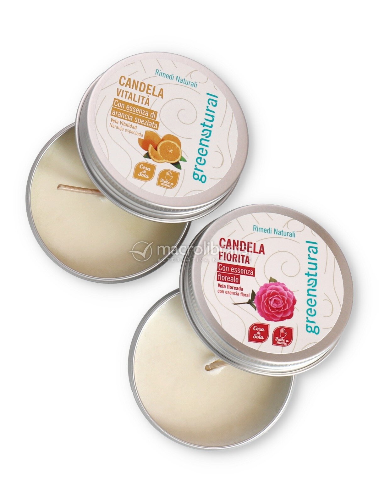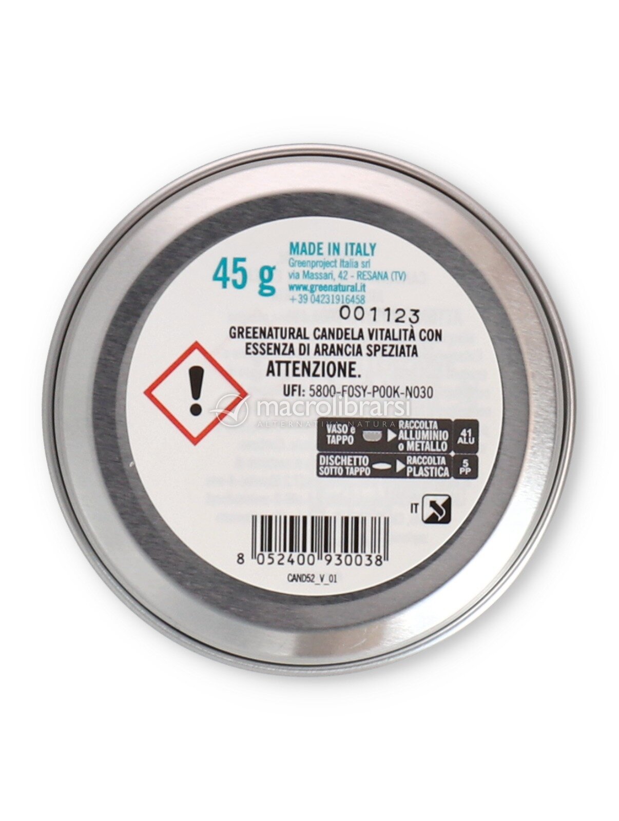 - Candela Vitalità con olio essenziale di Arancia speziata: diffonde un profumo frizzante e solare di Arancio dolce, capace di donare energia e buonumore.
