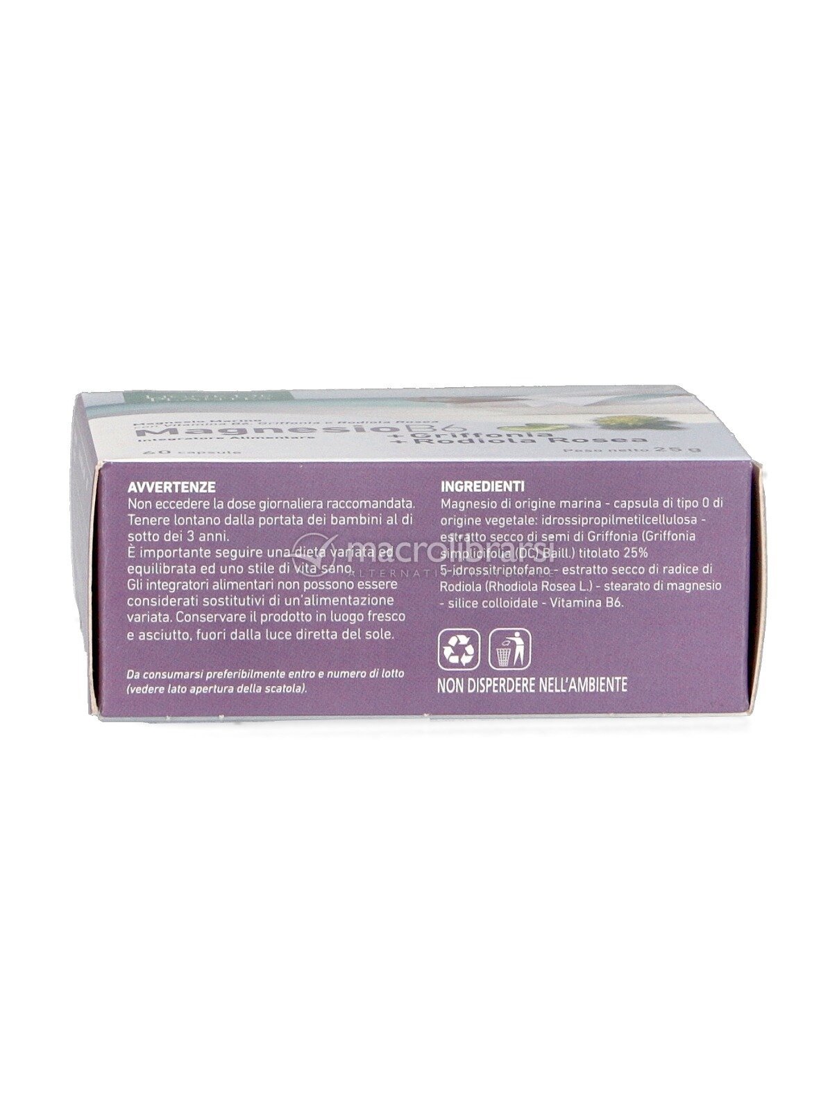 I semi di Griffonia favoriscono il normale tono dell'umore, il rilassamento (sonno) e benessere mentale e il controllo del senso di fame. Le radici di Rodiola favoriscono il normale tono dell'umore, tonico (stanchezza fisica, mentale). Tonicoadattogeno.