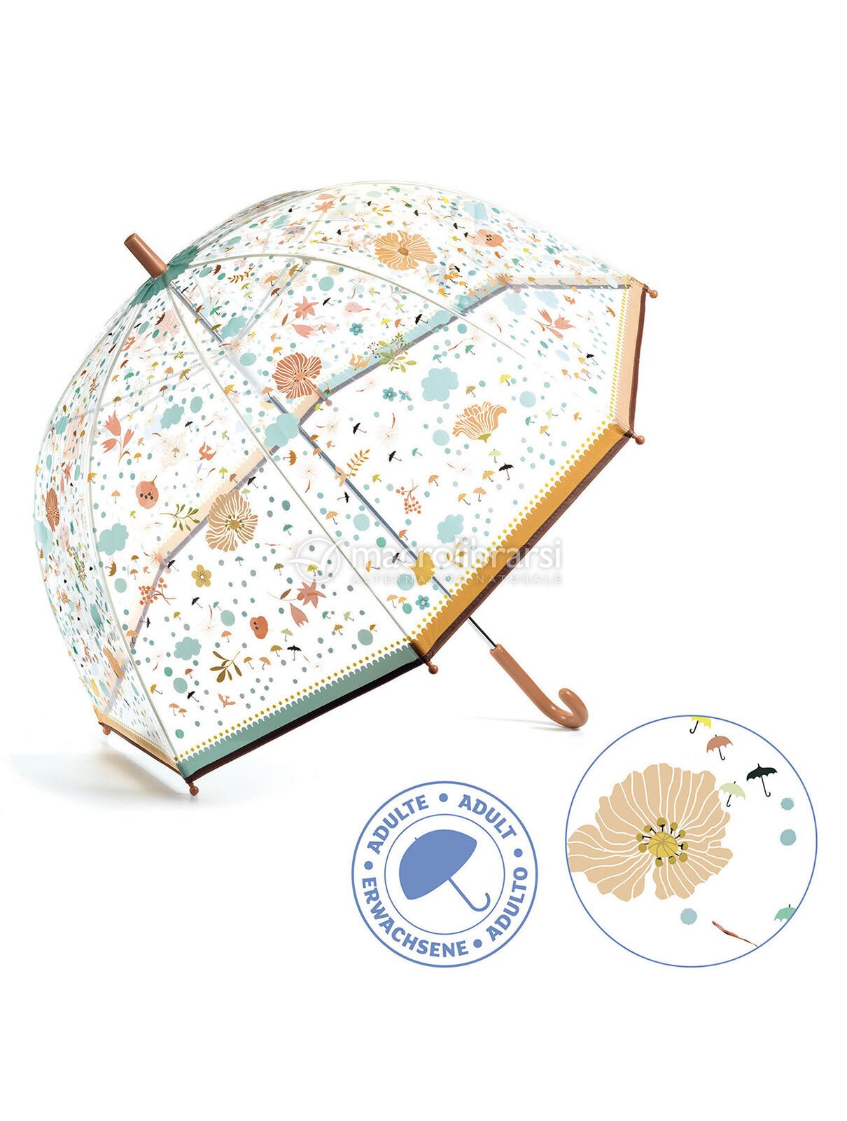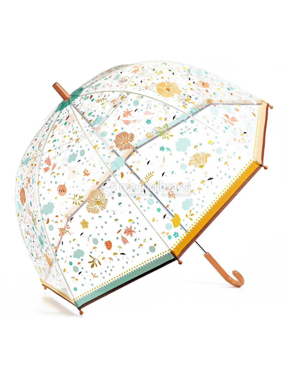 Ombrello trasparente con coloratissimi fiori stampati della linea Little Big Room di Djeco.