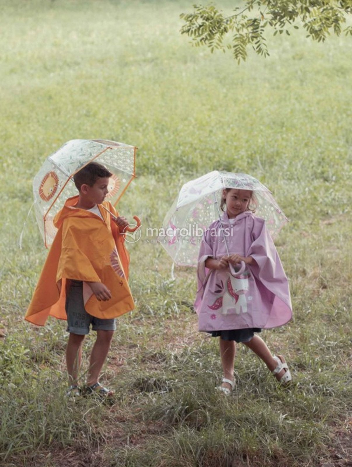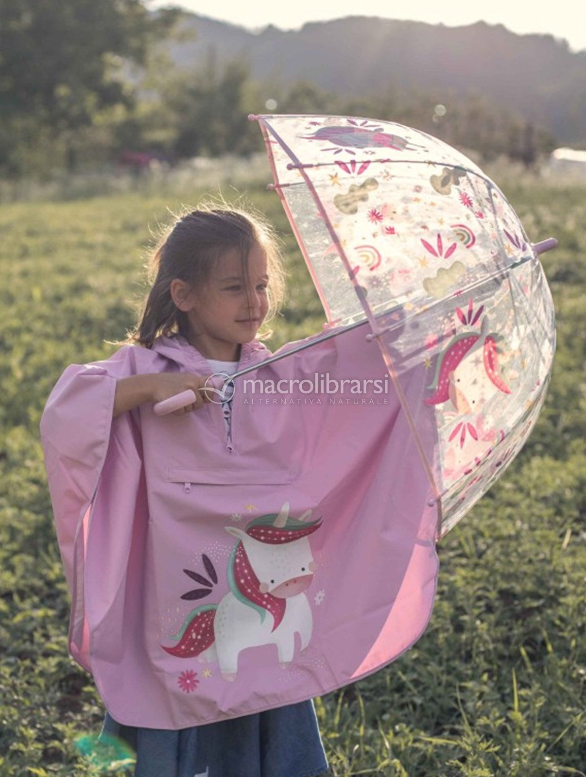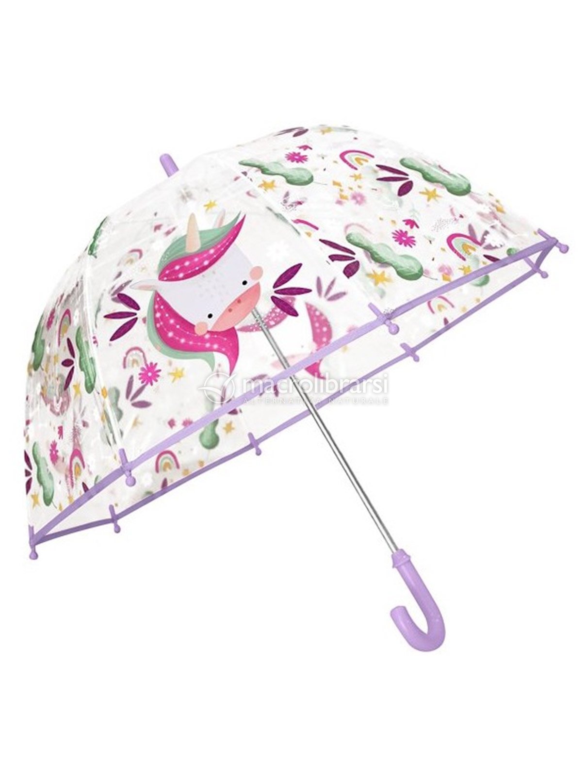 Ombrello trasparente per bambini dai 3 anni, decorato con le divertenti immagini dell'unicorno Sparkly.