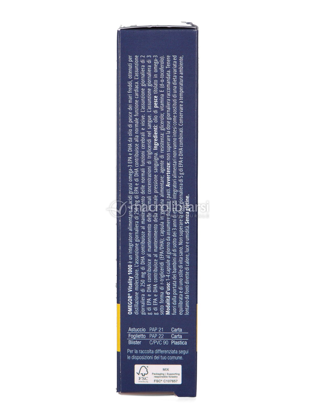 Omegor Vitality 1000 lo si può descrivere in tre parole potenza, purezza e freschezza.E’ un integratore concentrato di Omega-3 e vitamina E naturale, un prodotto di qualità premium certificato e che oltre tutto può essere assunto da tutti i membri della famiglia anche dai bambini e per periodi anche molto lunghi.Non ha alcun retrogusto di pesce.Mi è stato consigliato dalla mia nutrizionista per eliminare i metalli pesanti dal corpo essendo allergica al nichel ma, che è utilissimo anche per preservare la capacità visiva, la funzione cerebrale e cardiaca, la pressione sanguigna. Ottimo prodotto, consigliato.