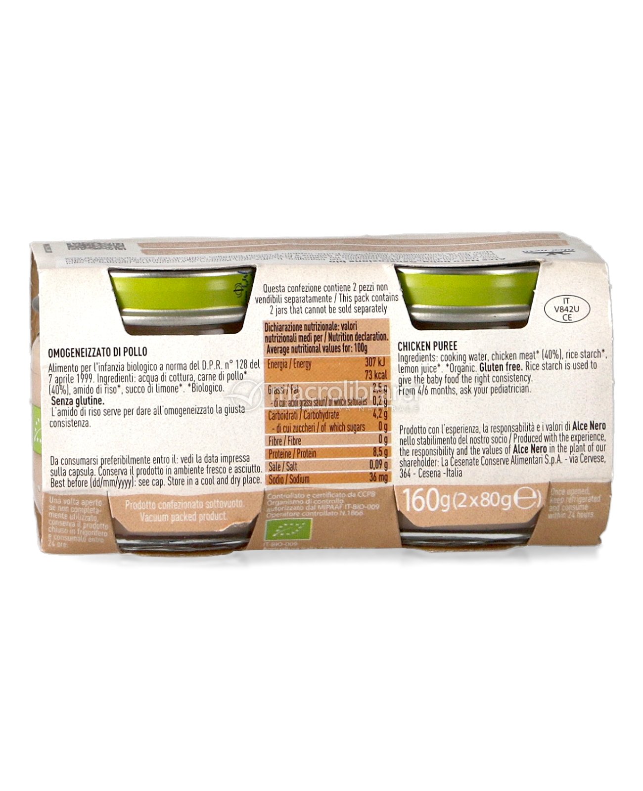 Tutti gli omogeneizzati a base carne vengono lavorati nello stabilimento Alce Nero certificato per la produzione di alimenti per l’infanzia.