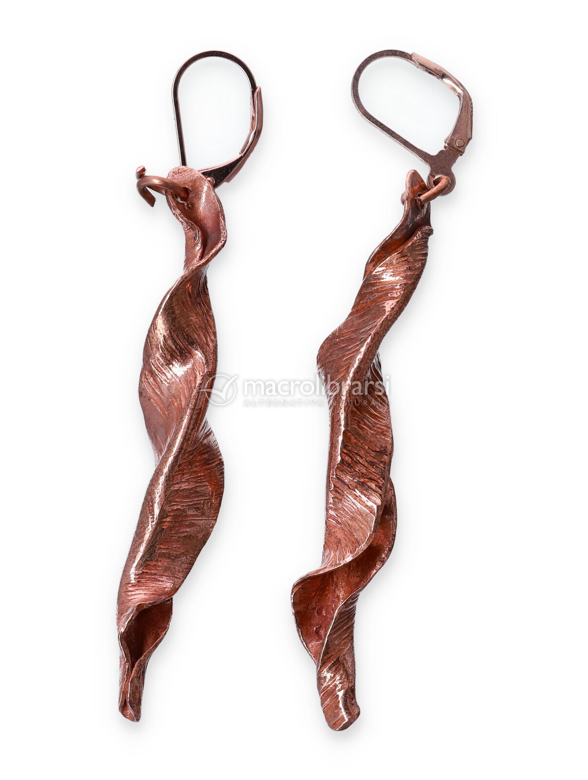Lasciati ispirare dalla bellezza autentica della natura con gli orecchini "Demetra", raffinati gioielli artigianali in rame dalla delicata forma di foglia. Ogni pezzo è realizzato e lavorato a mano, caratteristica che rende ogni creazione unica e irripetibile.