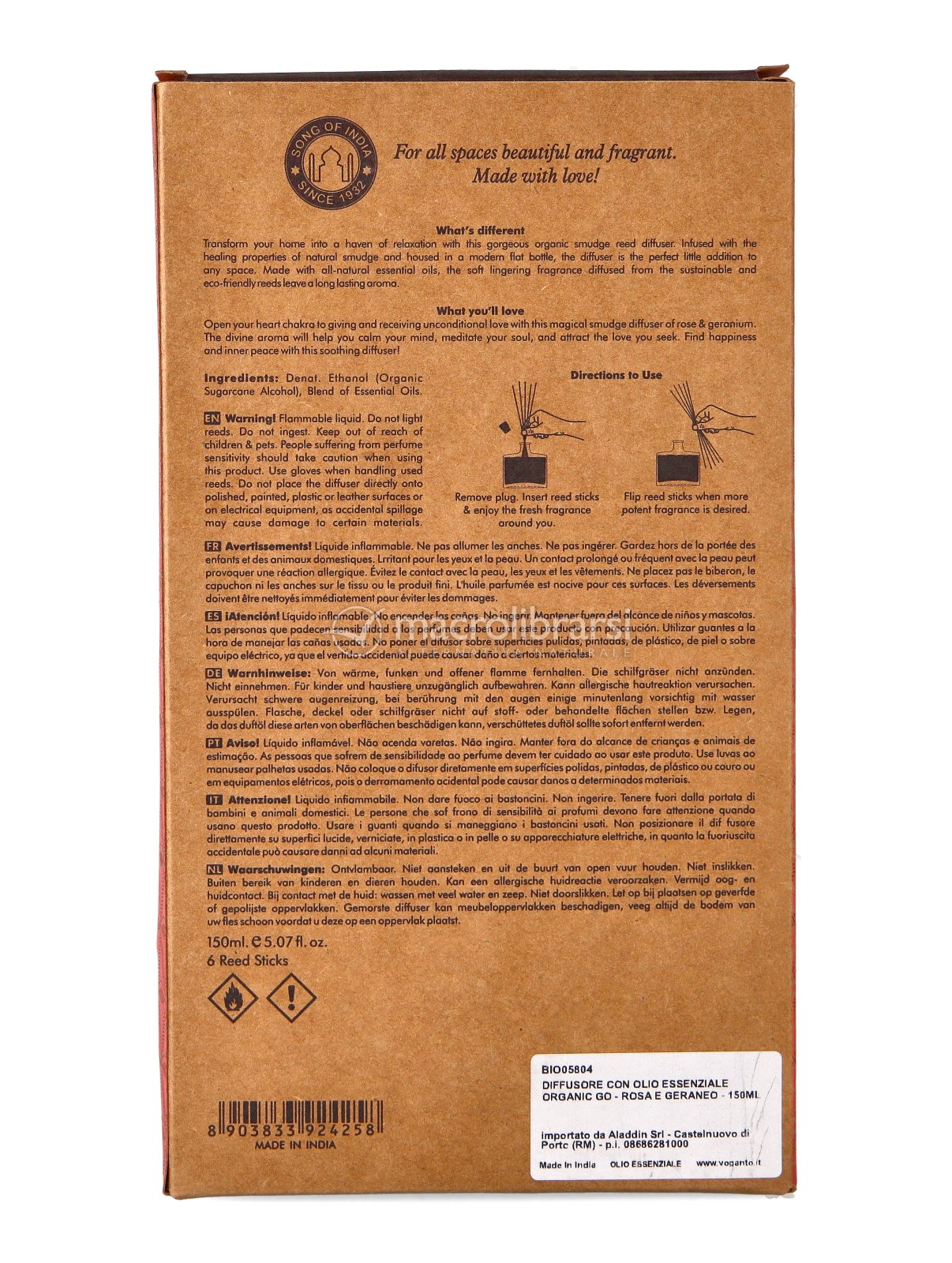 Trasforma l'atmosfera dei tuoi ambienti con un elegante diffusore di oli essenziali naturali - Rosa e Geranio.