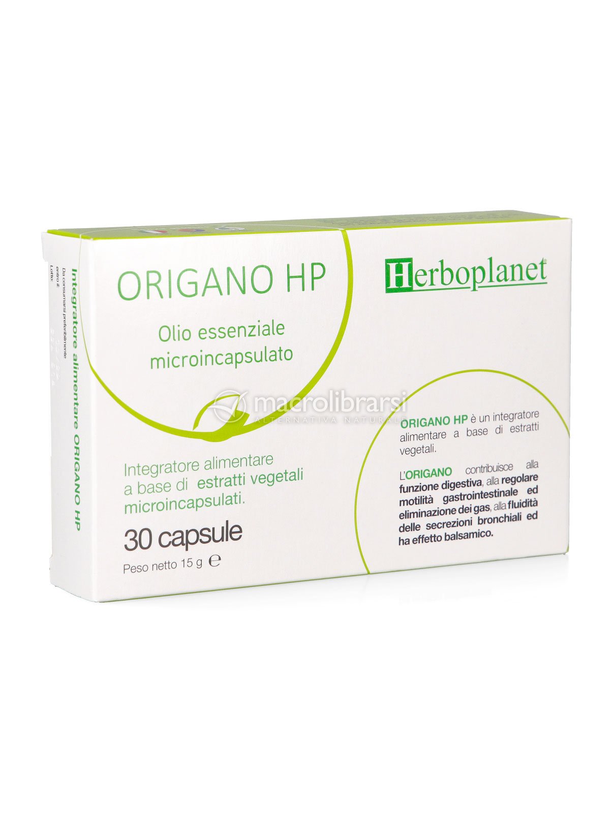 Integratore alimentare a base di olio essenziale di origano microincapsulato, utile per sostenere la funzione digestiva, la regolare motilità gastrointestinale, l’eliminazione dei gas e la fluidità delle secrezioni bronchiali.