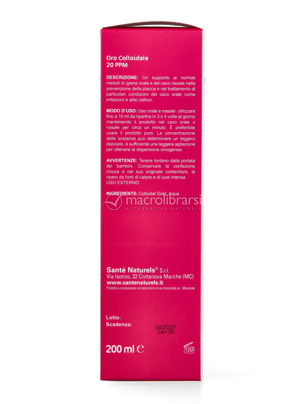 L'Oro Colloidale vero è una sostanza liquida composta da piccolissime particelle di Oro Puro ed acqua demineralizzata. Il prodotto di Santè Naturels è considerato vero Oro Colloidale, poiché si differenzia dalla maggior parte dei prodotti in commercio che sono sostanzialmente sostanze ioniche (composte da soli ioni). Il vero colloide è invece particellare e questo prodotto è al 100% particellare.
