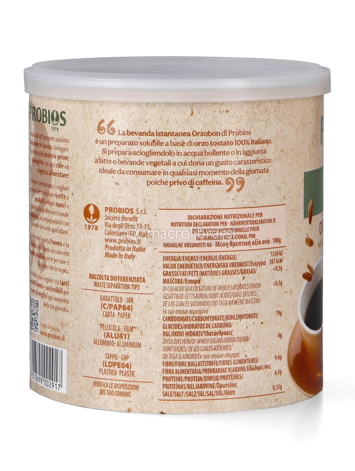 questo orzo solubile di Probios è un prodotto buono e di qualità, privo di sostanze aggiuntive, 100% orzo italiano, un'ottima alternativa al caffè e buono non solo a colazione ma in qualsiasi momento della giornata.