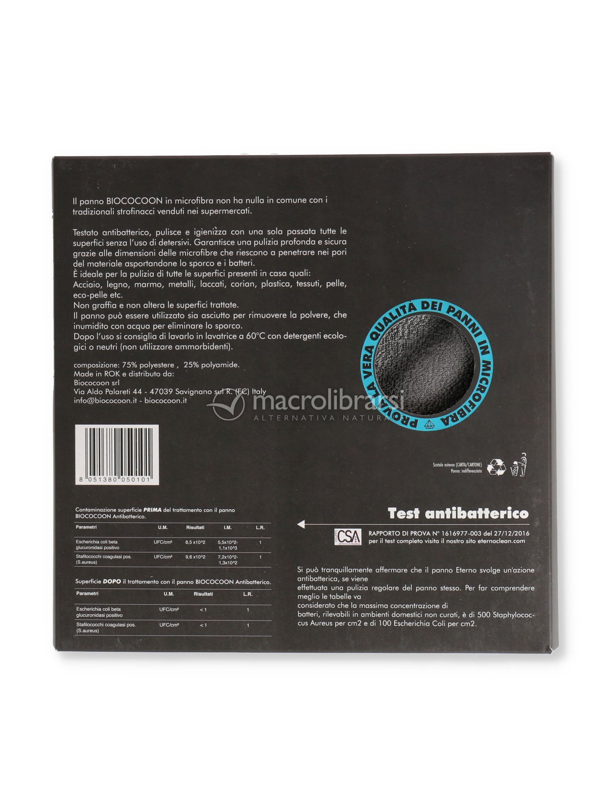 Il panno multiuso Biococoon testato antibatterico è realizzato con microfibra di alta qualità ed è adatto per una pulizia efficace di tutte le superfici.