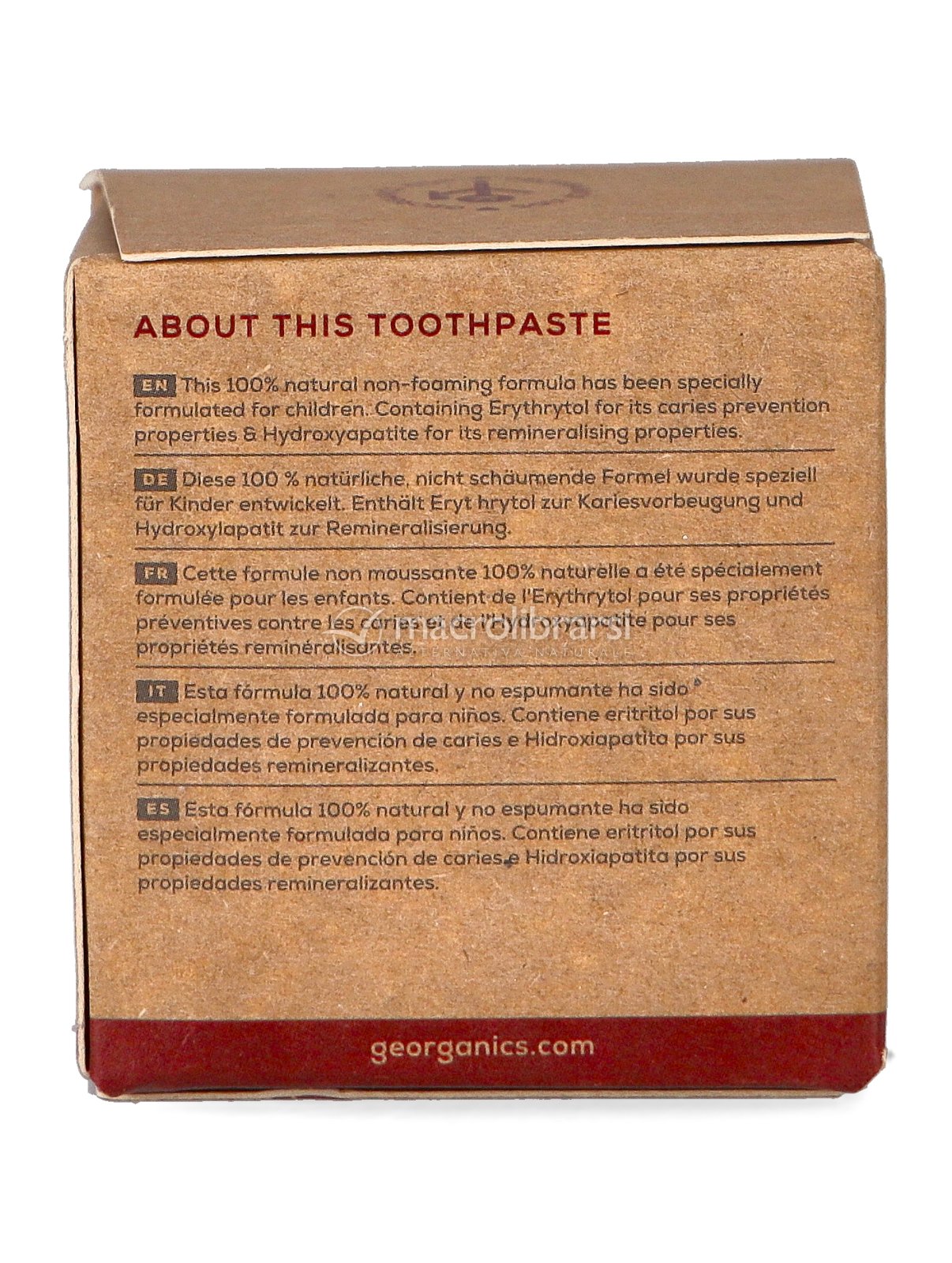 Questo dentifricio 100% naturale, privo di fluoro, è stato studiato appositamente per i bambini! Con il suo delizioso gusto fragola e i vivaci coloranti naturali, rende il momento dello spazzolino piacevole e divertente.