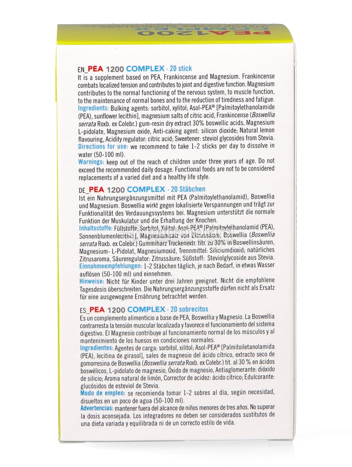 Pea 1200 Complex è un integratore in pratici stick senza glutine a base di PEA micronizzata, una sostanza che il nostro corpo produce naturalmente, utile per proteggere i tessuti e modulare il dolore. Contiene, inoltre: