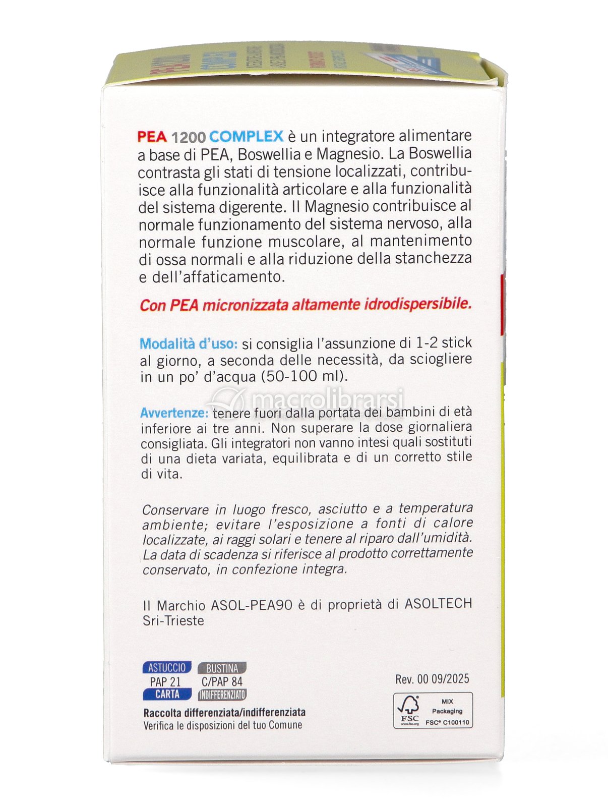 | Disclaimer | Non superare la dose giornaliera consigliata. Gli integratori alimentari non vanno intesi come sostituti di una dieta variata ed equilibrata. Tenere fuori dalla portata dei bambini al di sotto dei tre anni. Non utilizzare in gravidanza e nei bambini o comunque per periodi prolungati senza sentire il parere del medico. Conservare in luogo asciutto e lontano da fonti di calore. Richiudere la confezione dopo l'uso. Macrolibrarsi ricorda l'importanza di seguire uno stile di vita sano e un'alimentazione variata ed equilibrata. |