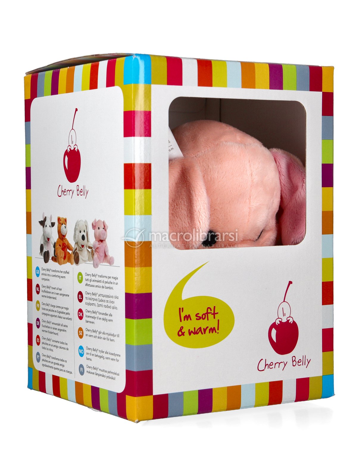 Peluche rosa a forma di maialino, con cuore ai noccioli di ciliegia.