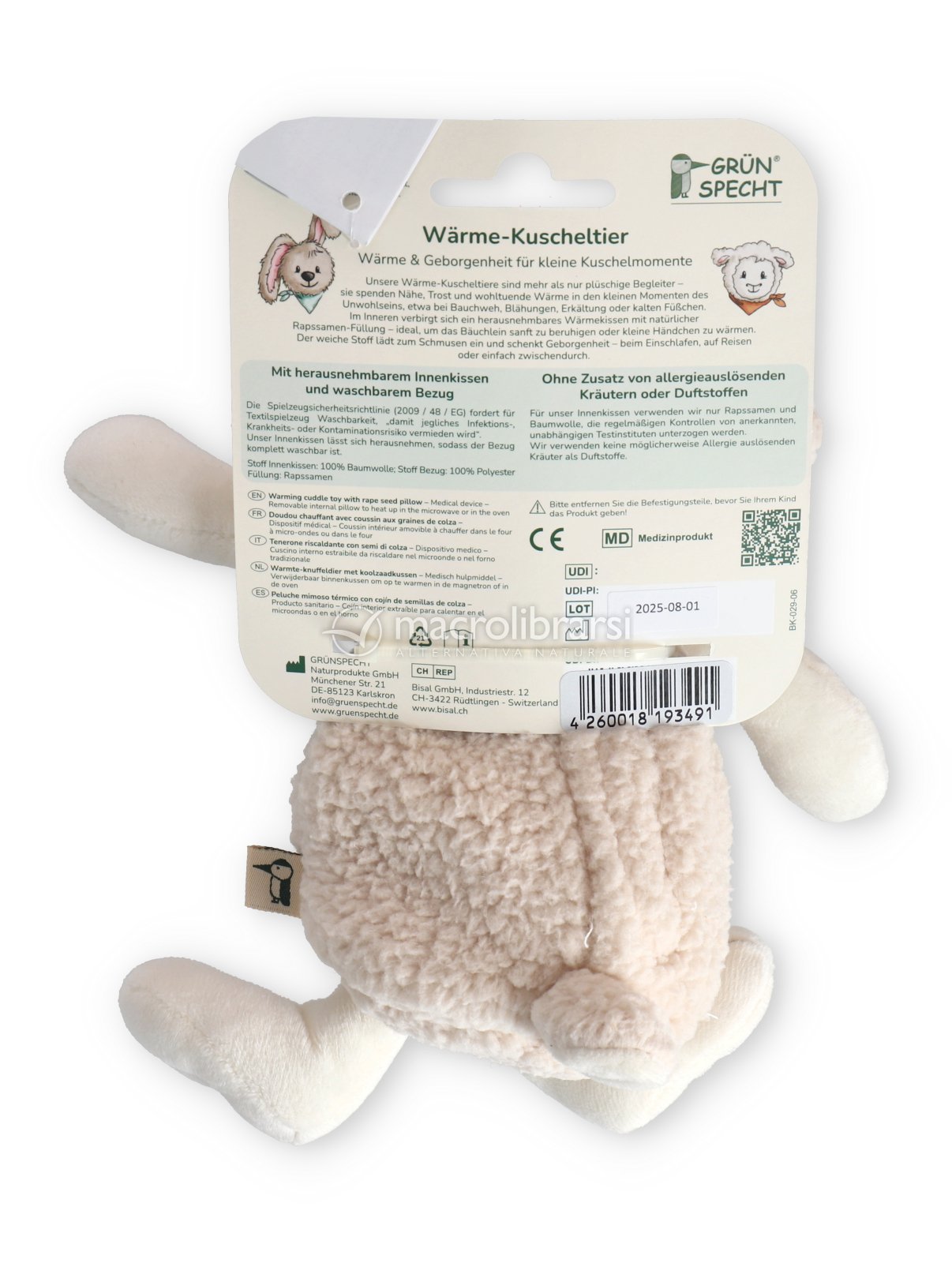 Peluche sfoderabile a forma di pecorella con imbottitura in semi di colza da scaldare.