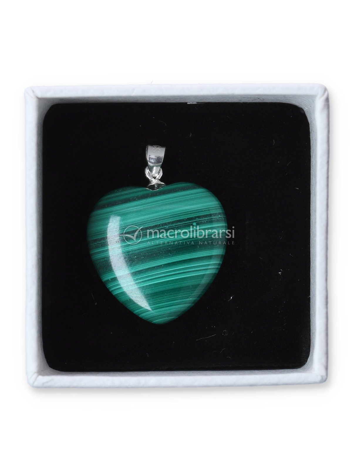 Un cuore di Malachite dalle venature ipnotiche, incastonato in argento per portare con te un tocco di verde profondo.