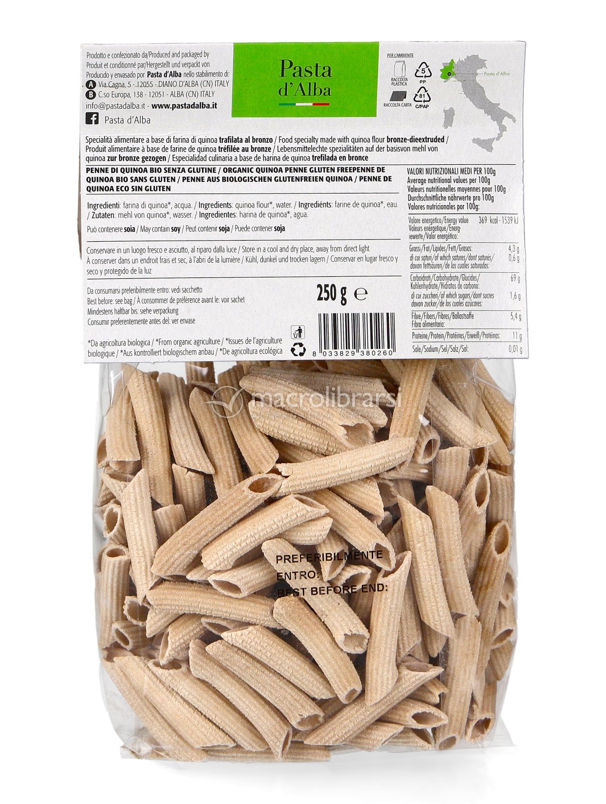Prodotte con farina di quinoa biologica, un ingrediente rinomato per il contenuto di proteine, amminoacidi essenziali e minerali, queste penne offrono un profilo nutrizionale superiore rispetto alla pasta tradizionale.