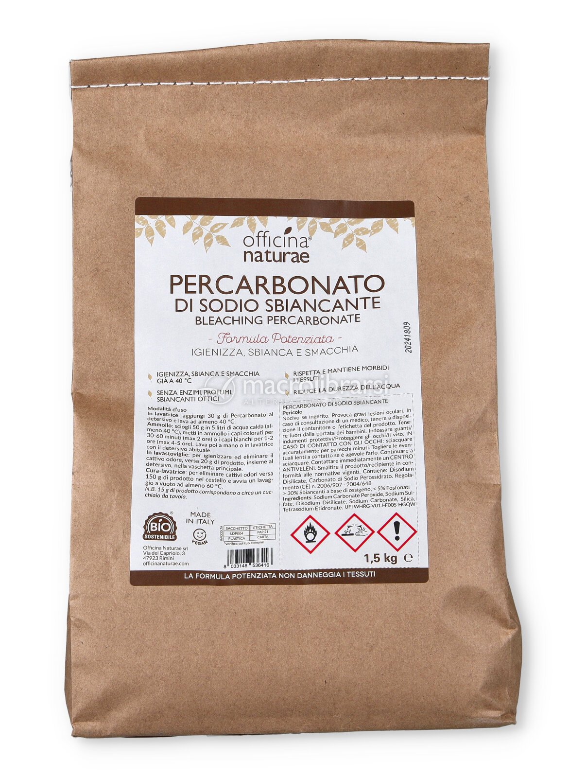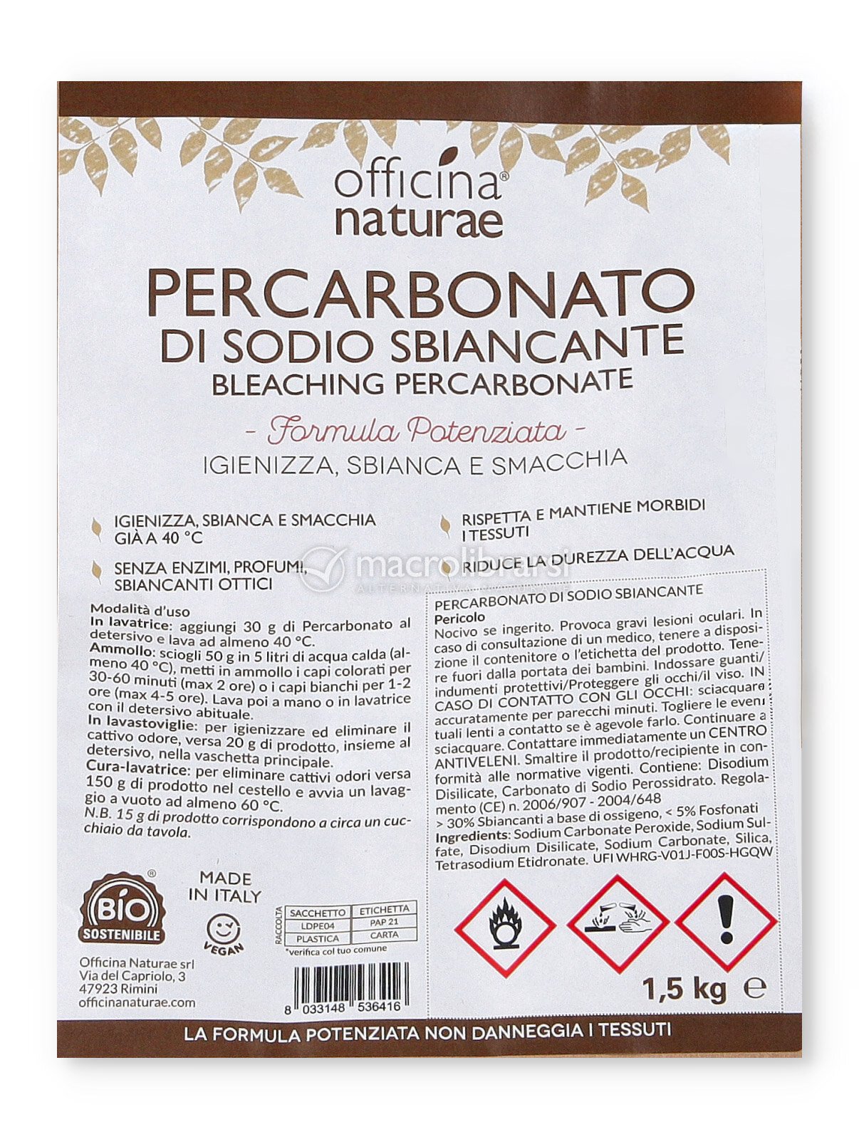 Il Percarbonato Sbiancante Officina Naturae, grazie alla sua formula esclusiva arricchita con Silicati e Fosfonati, addolcisce l'acqua, migliorando l'efficacia di lavaggio e permettendo di ridurre la dose di detersivo.