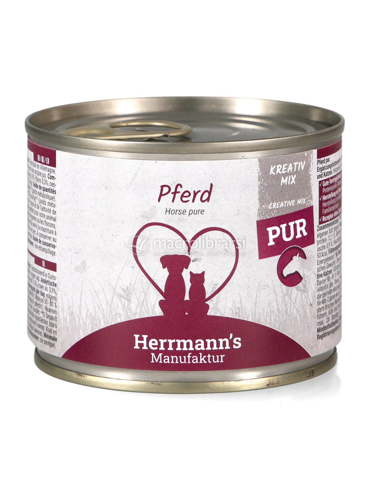 L'umido di puro cavallo Herrmann's Creative Mix è realizzato al 100% con carne di qualità human grade proveniente da animali che vivono in natura allo stato brado.